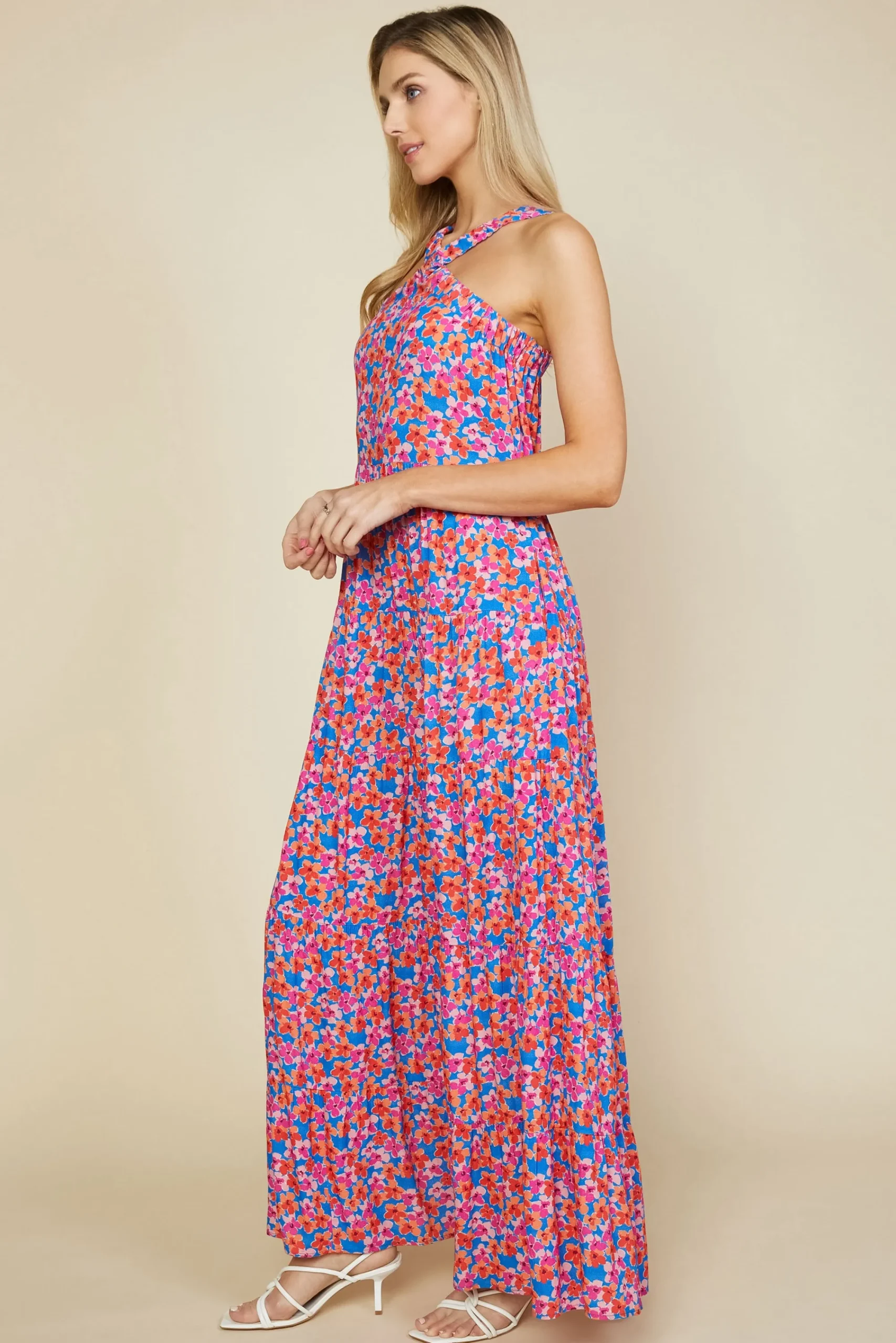 Be ready to fall in love with this floral-print halter dress. It’s cut to flatter, designed with a fitted yet comfortable bodice, shirred straps, and a flowy tiered skirt. Instant favorite.