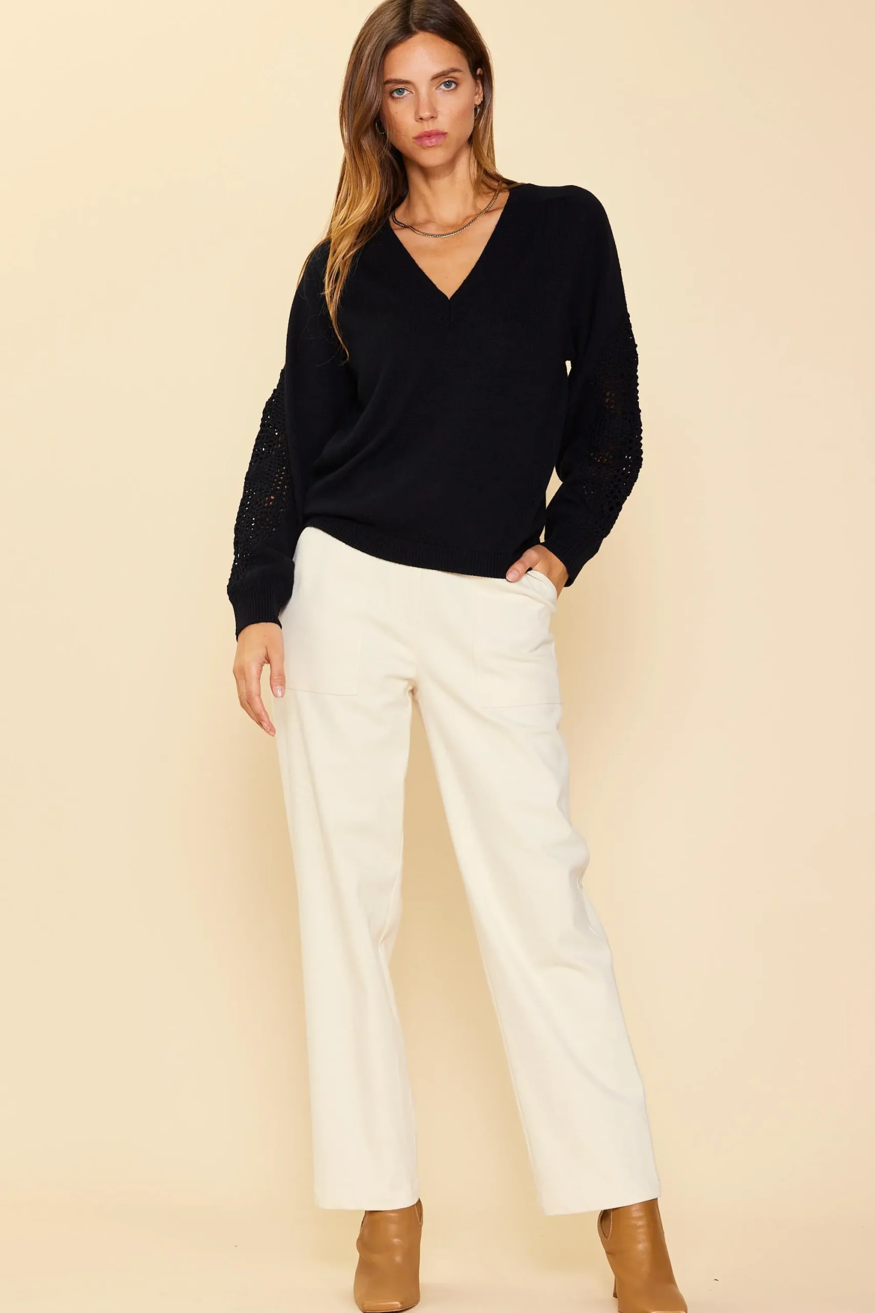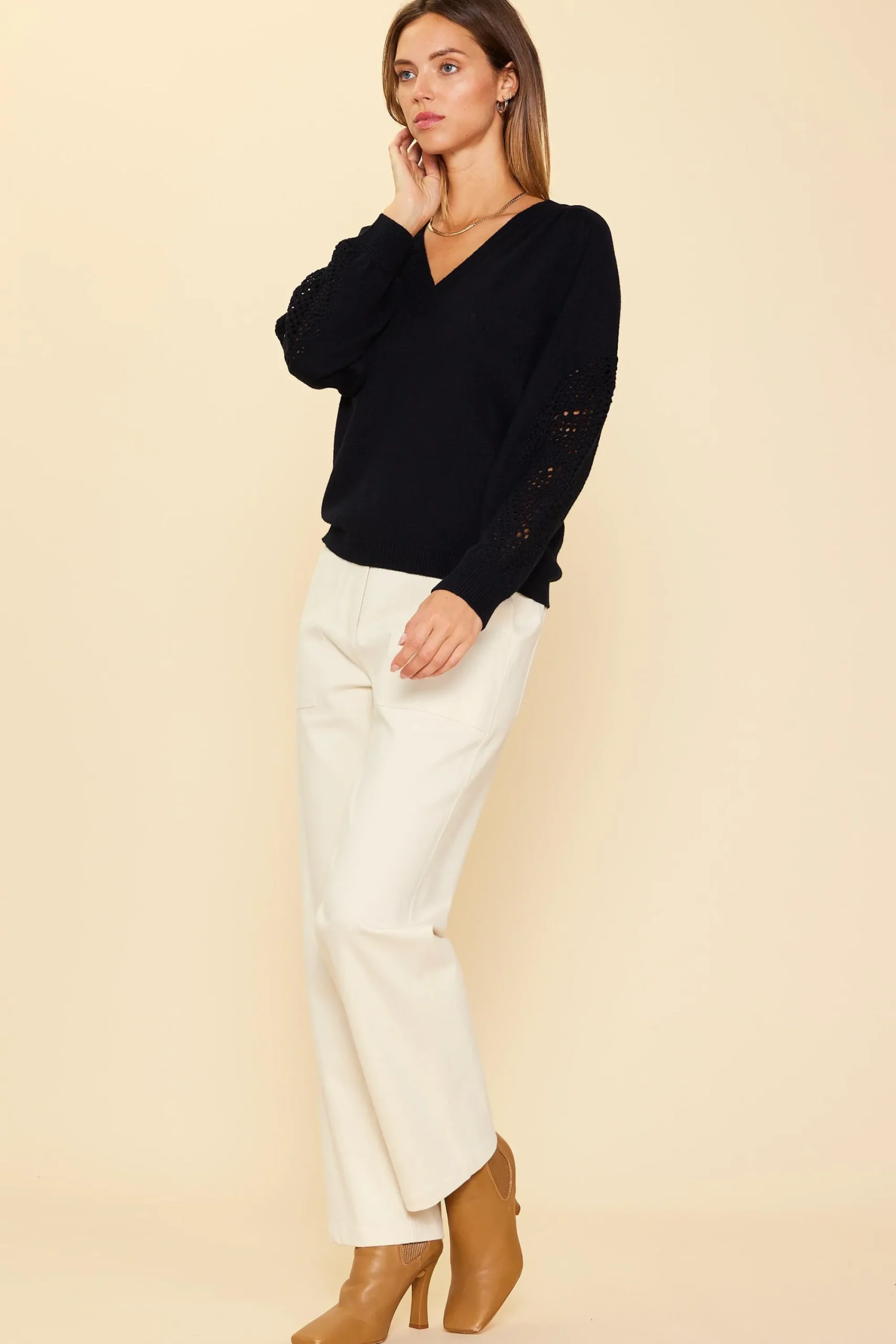 SKIES ARE BLUE Crochet Sleeve Knit Sweater* Sweaters