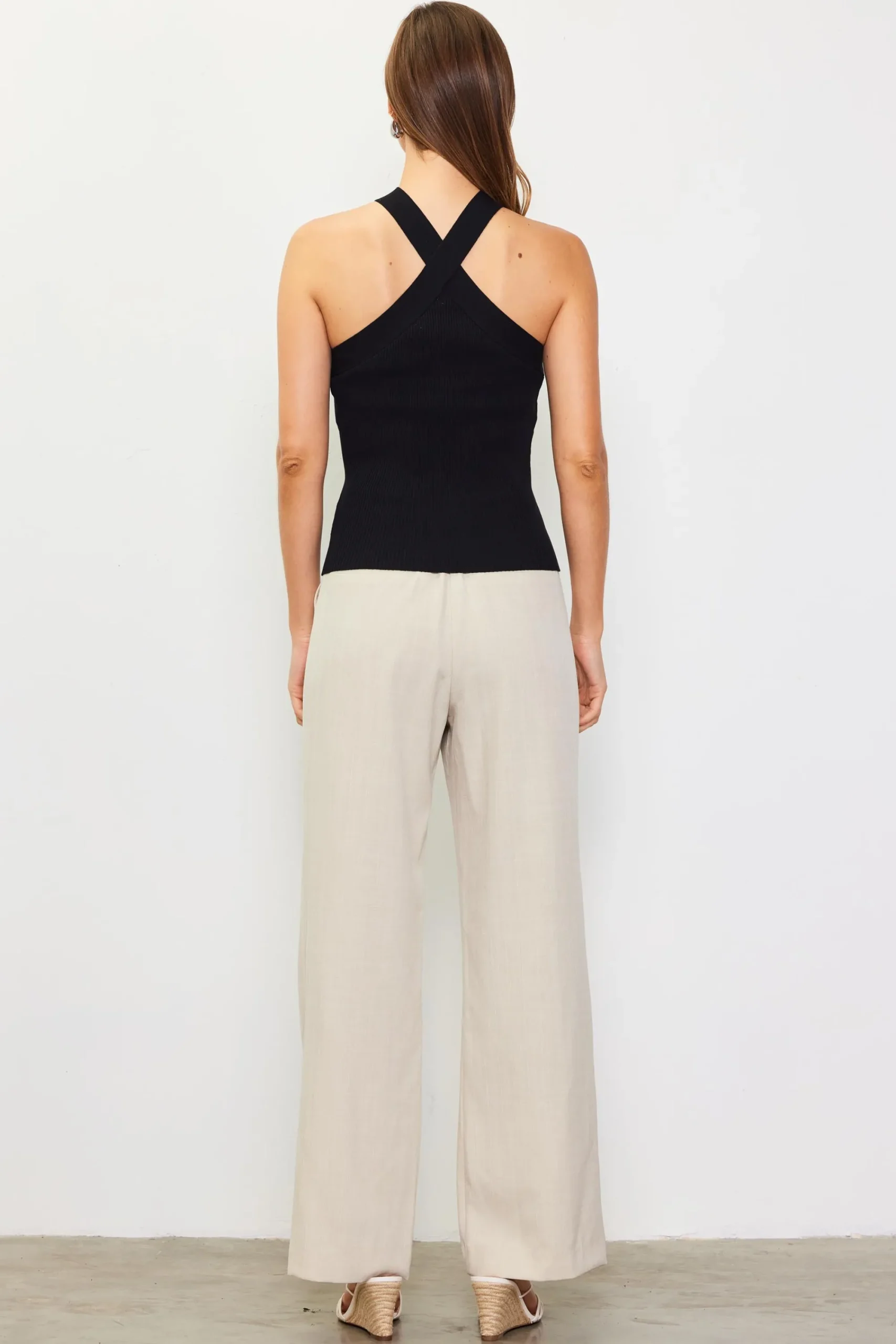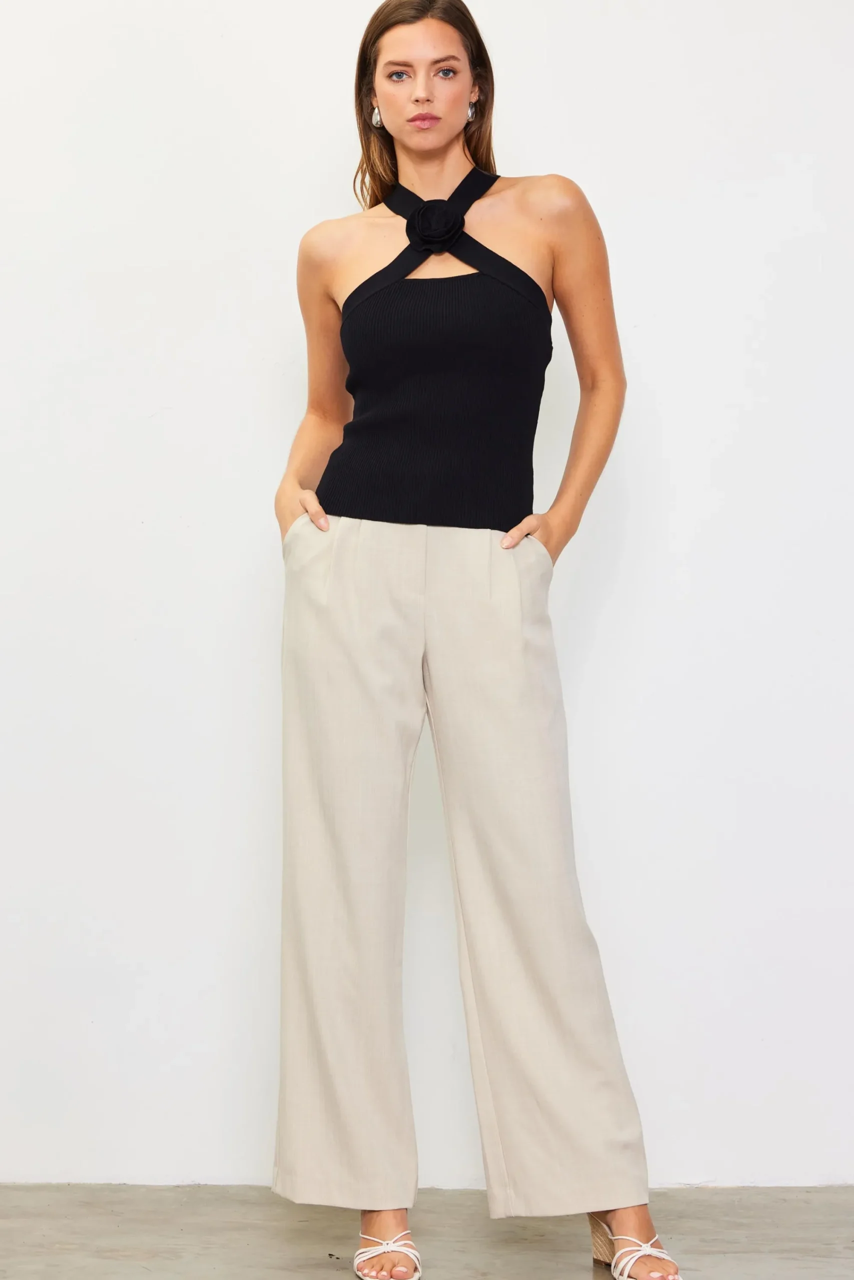 SKIES ARE BLUE Detachable Rosette Knit Halter Top* Sleeveless Tops