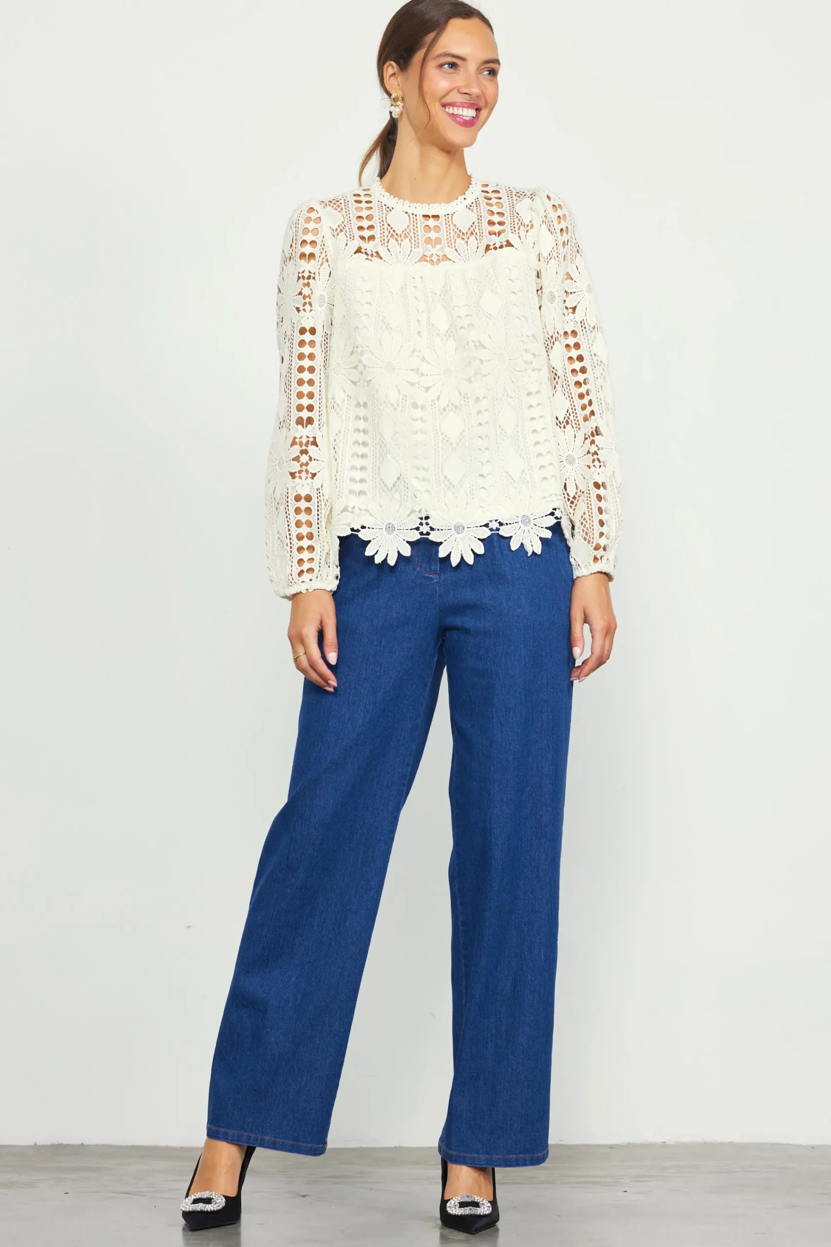 SKIES ARE BLUE Eyelet Lace Longsleeve Blouse* Blouses|Long Sleeve Tops