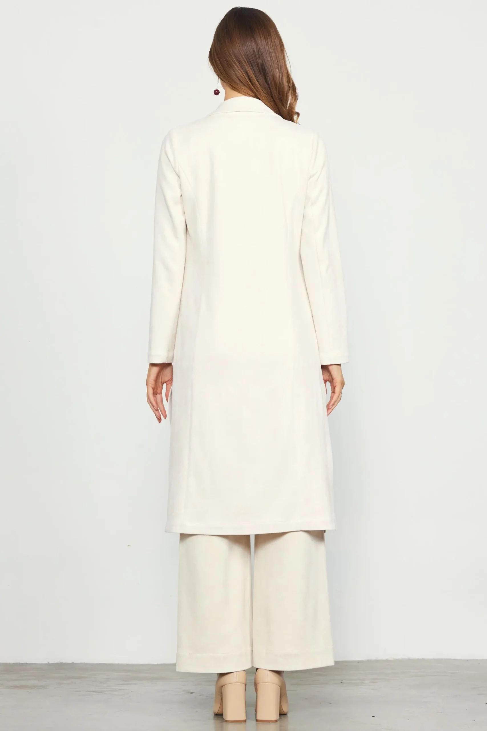 A sophisticated finishing touch. Defined by tailored details and long, clean lines, this faux-suede duster takes your look up a notch. The open placket makes it easy to slip on, while the deep side slits let it move with you.