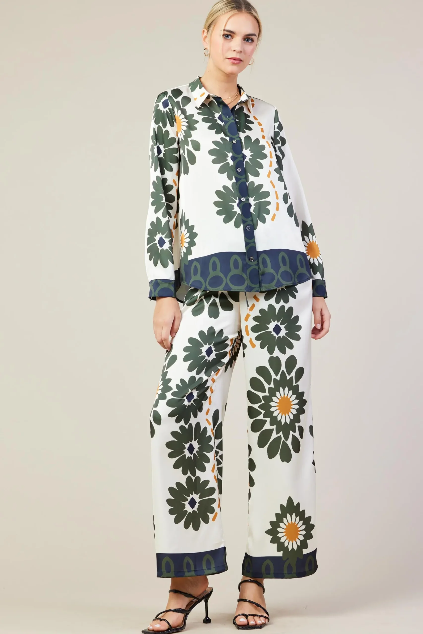 A bold print makes a striking impression on this button-up blouse. Lightweight and relaxed, the long-sleeve style features an abstract motif of blue, black, and red on an ivory base. It’s accented by a contrasting placket, cuffs, and hem.