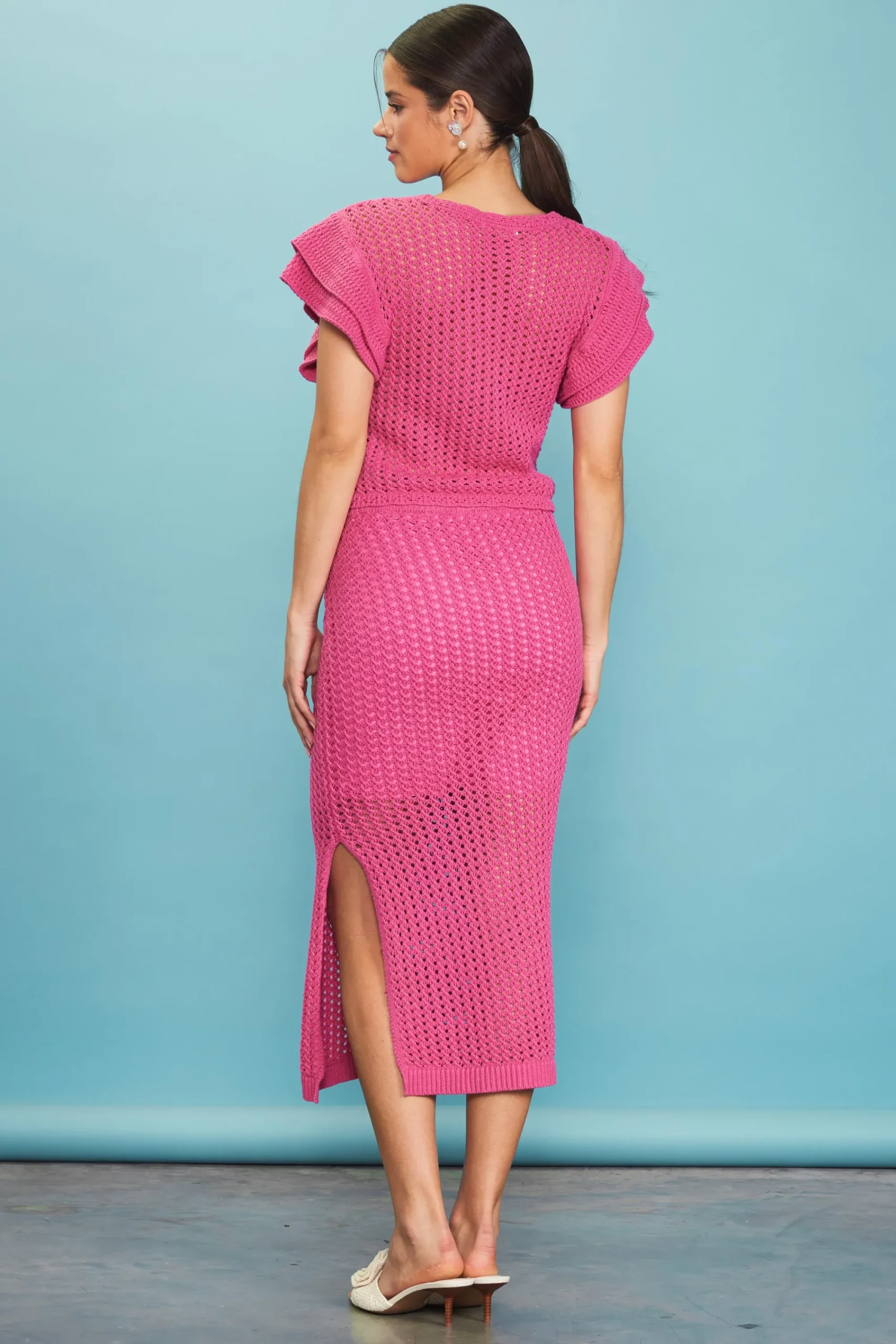 •Layered flutter sleeves
