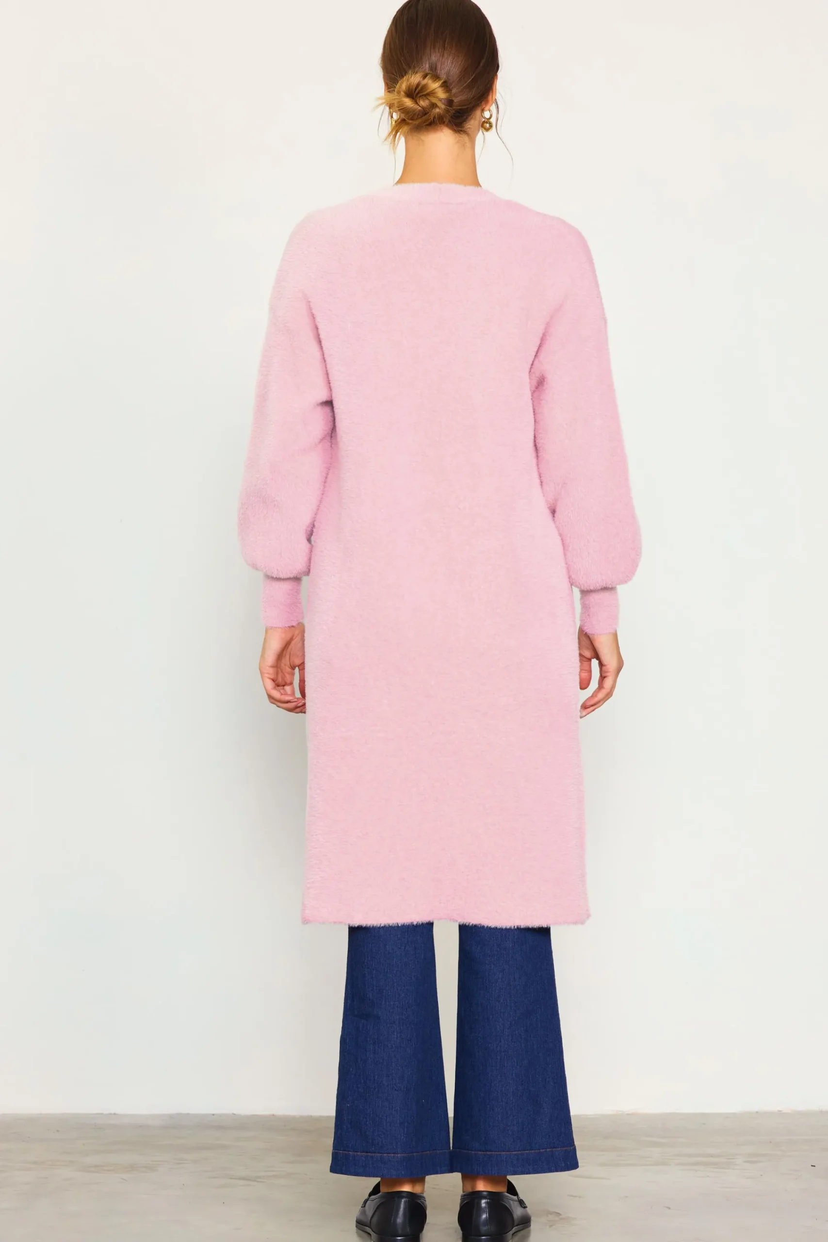 Part coat, part cardigan. With its soft, fuzzy texture in a long-line silhouette, you’ll want to layer this one over everything.