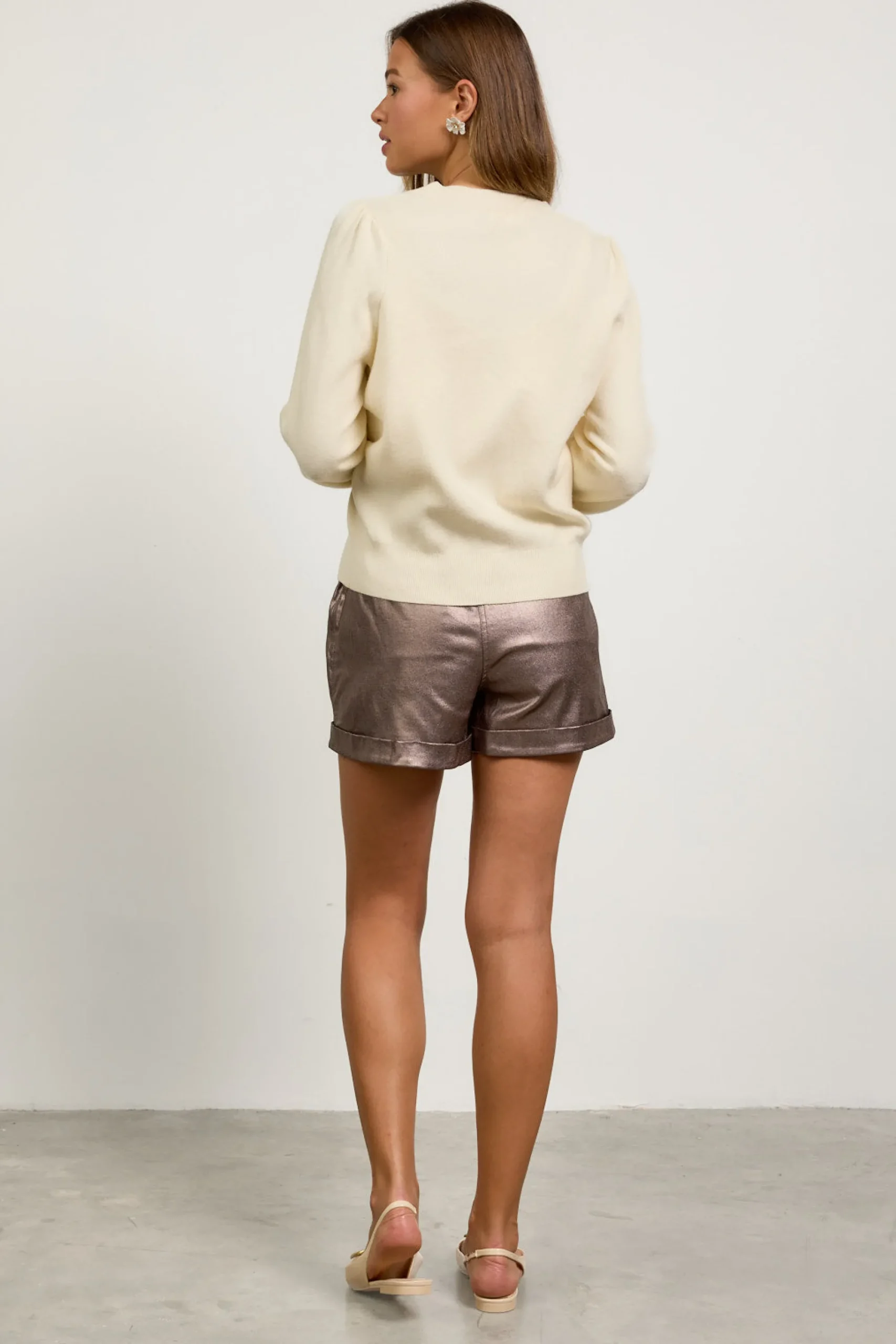 Shimmery metallic ties add a playful touch to this puff-sleeve cardigan. Designed with a relaxed fit and a plunging V-neckline, it’s a fun way to update your sweater collection for cooler days ahead.