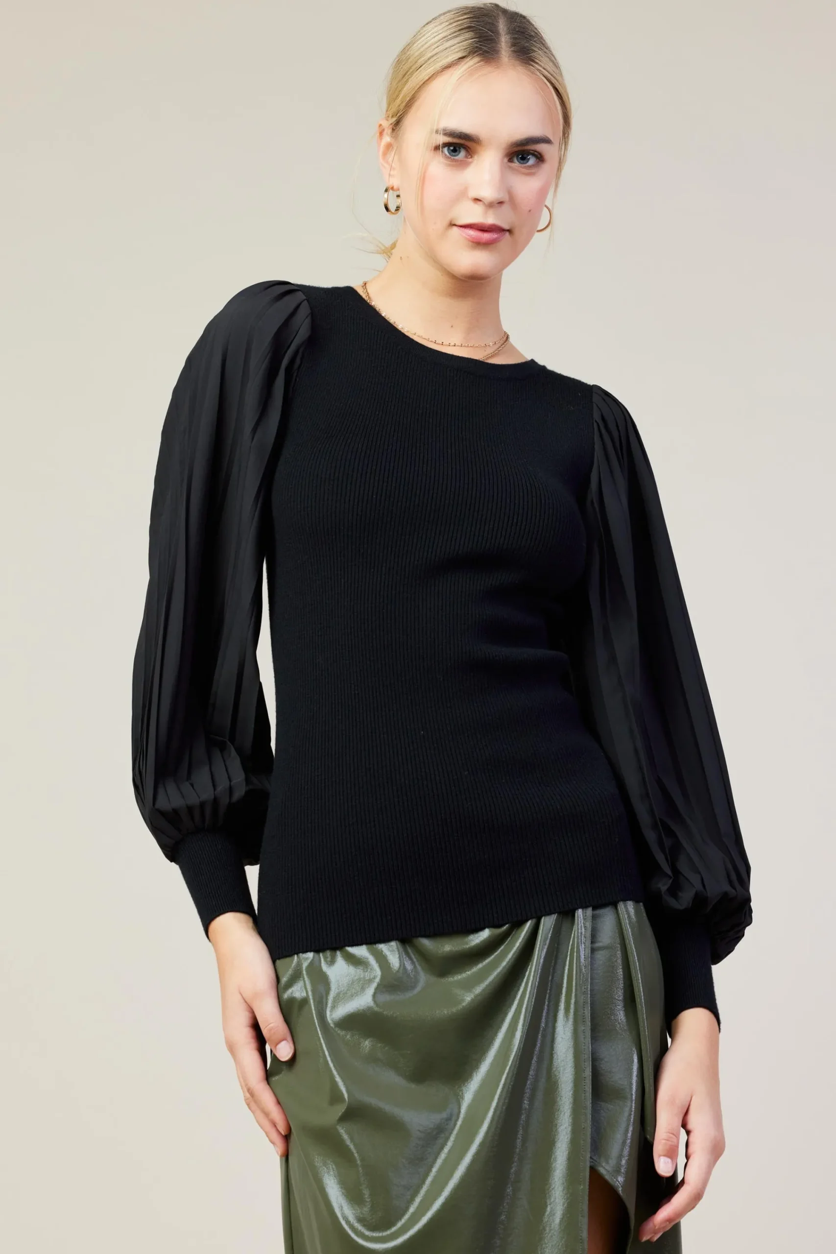 SKIES ARE BLUE Mixed Media Pleated Sleeve Top* Long Sleeve Tops