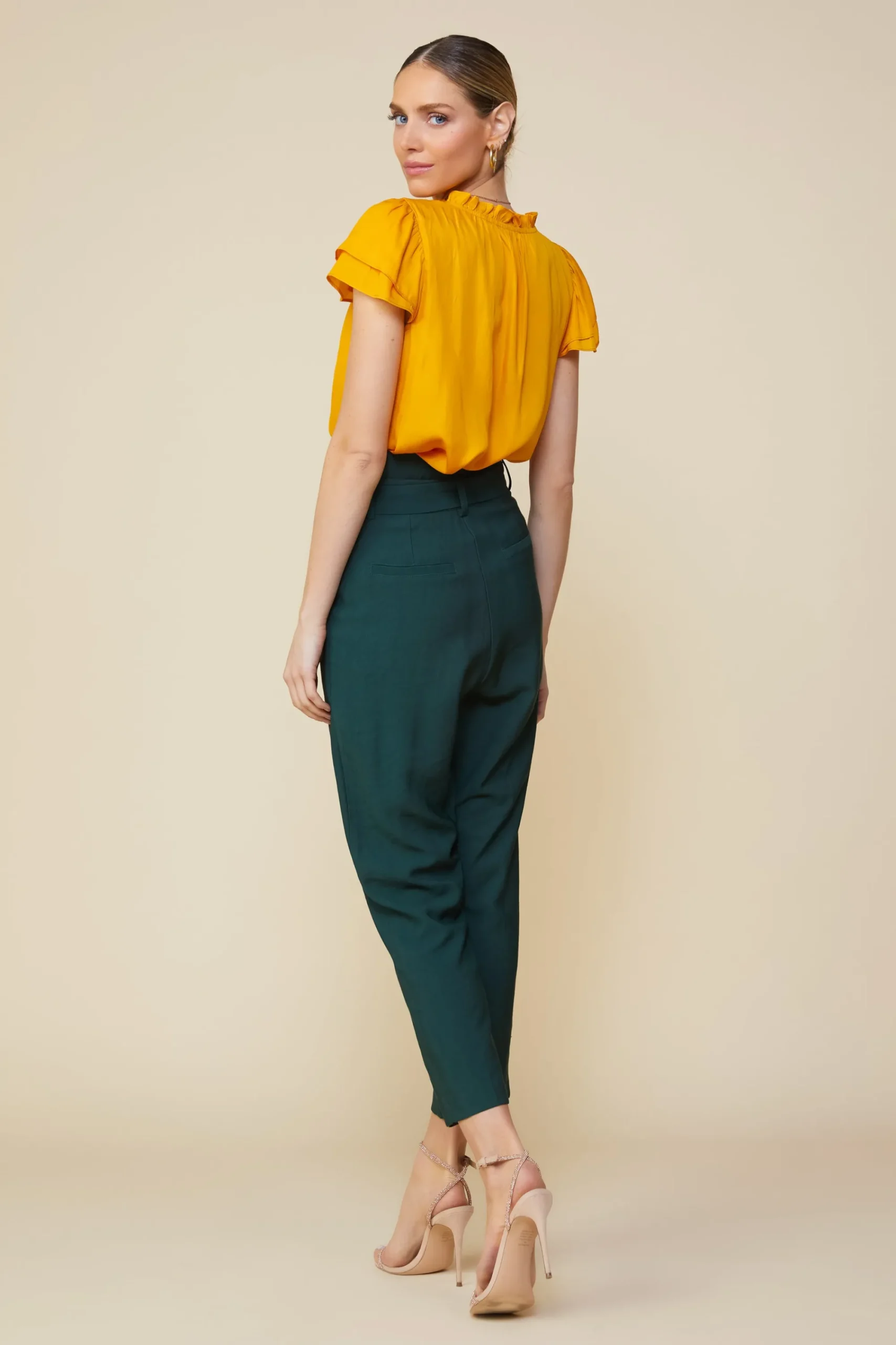A paperbag waist with pleat detailing and an adjustable tie belt defines these cropped pants. Kept comfortable by an elasticized back waistband, they’re a refined pair to put on permanent rotation.