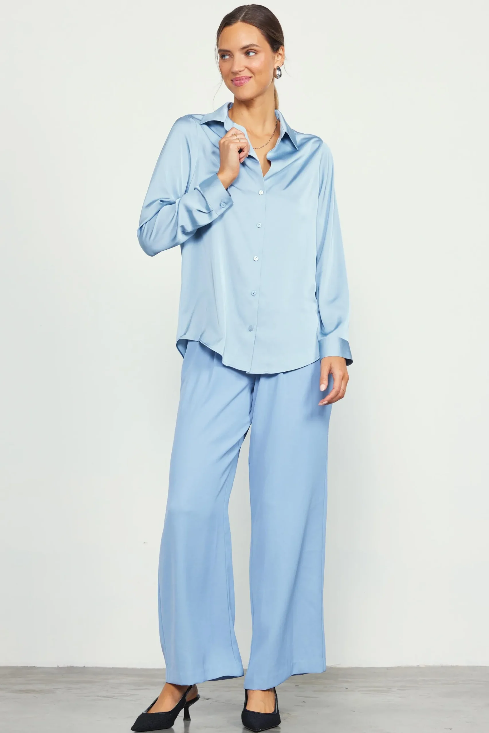 SKIES ARE BLUE Recycled Button Down Top* Blouses|Long Sleeve Tops