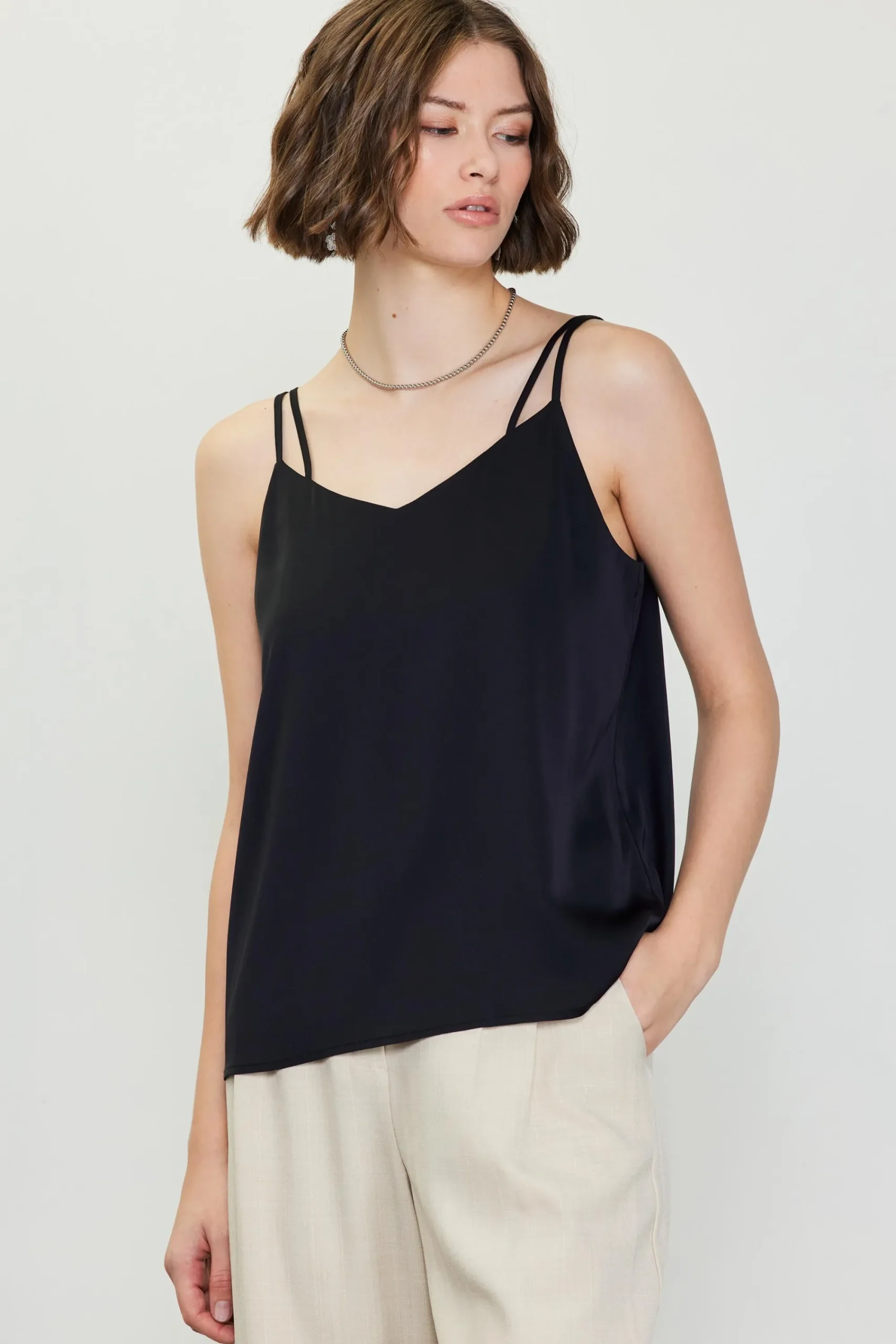 Our Recycled Double Strap Cami is a slinky staple that you can wear solo or layered in any season. Dress it up, dress it down—it works well for whatever’s on your calendar. The relaxed top is a sustainable standout made from recycled polyester and featuring adjustable straps.