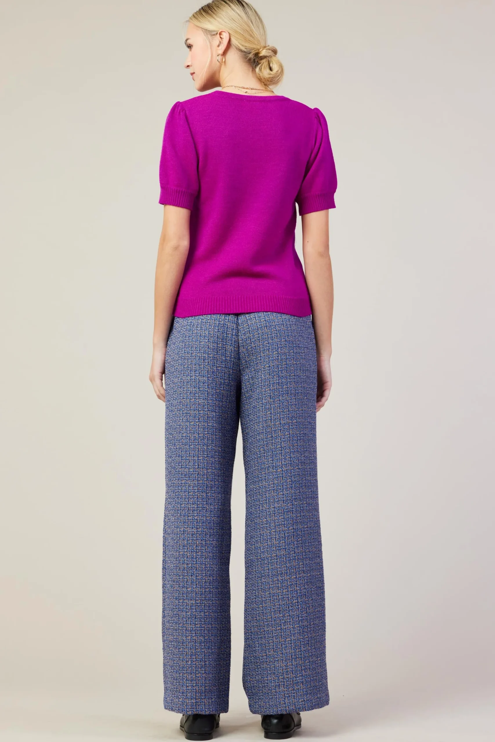 Short puffed sleeves deliver a feminine shape to this soft sweater top. It’s crafted from recycled fibers and pairs effortlessly with your go-to denim or a tailored pair of trousers.