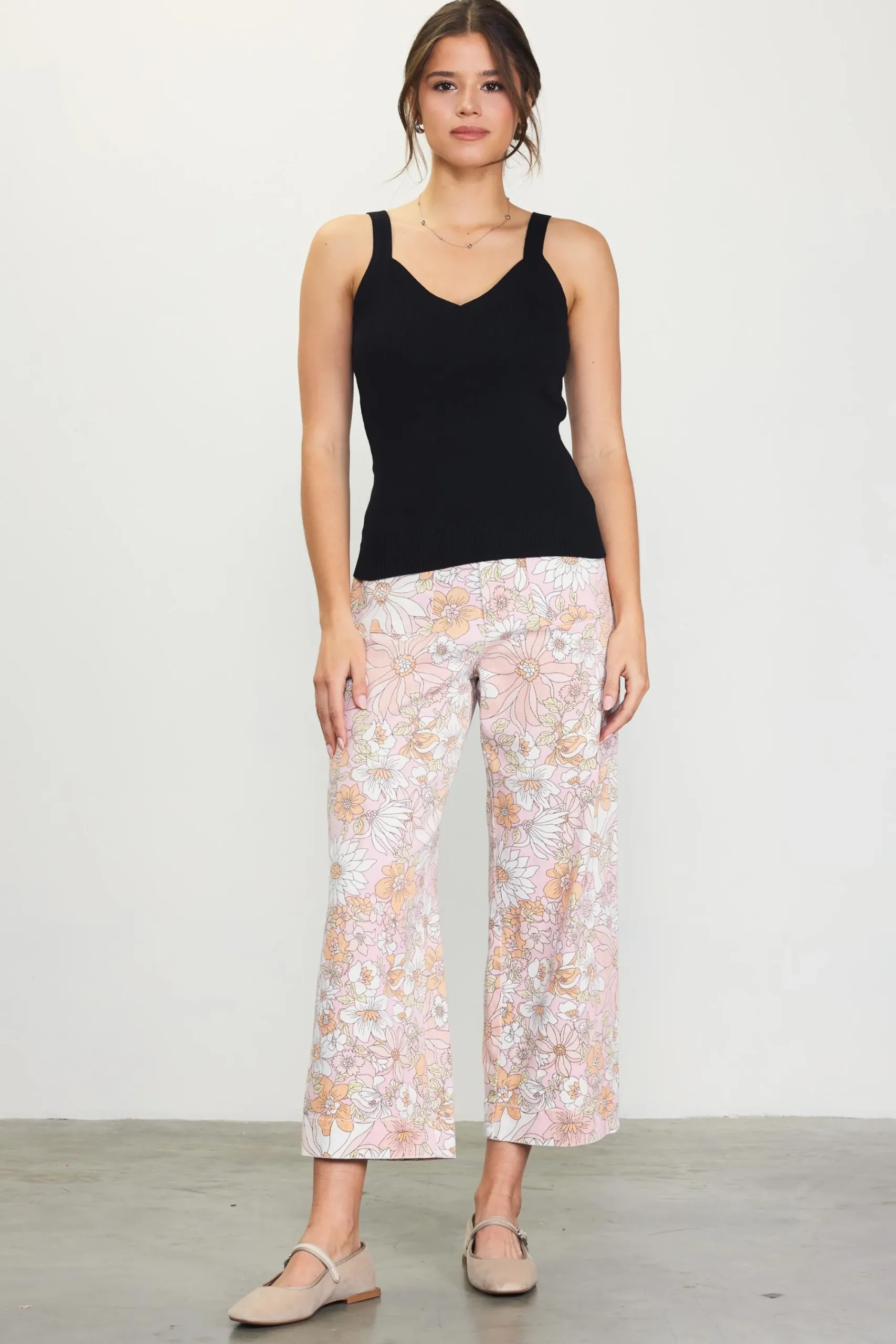 This strappy V-neck tank in a figure-hugging rib knit is the perfect foundation piece, no matter the season. Wear the clingy base layer on its own or underneath a cozy sweater.