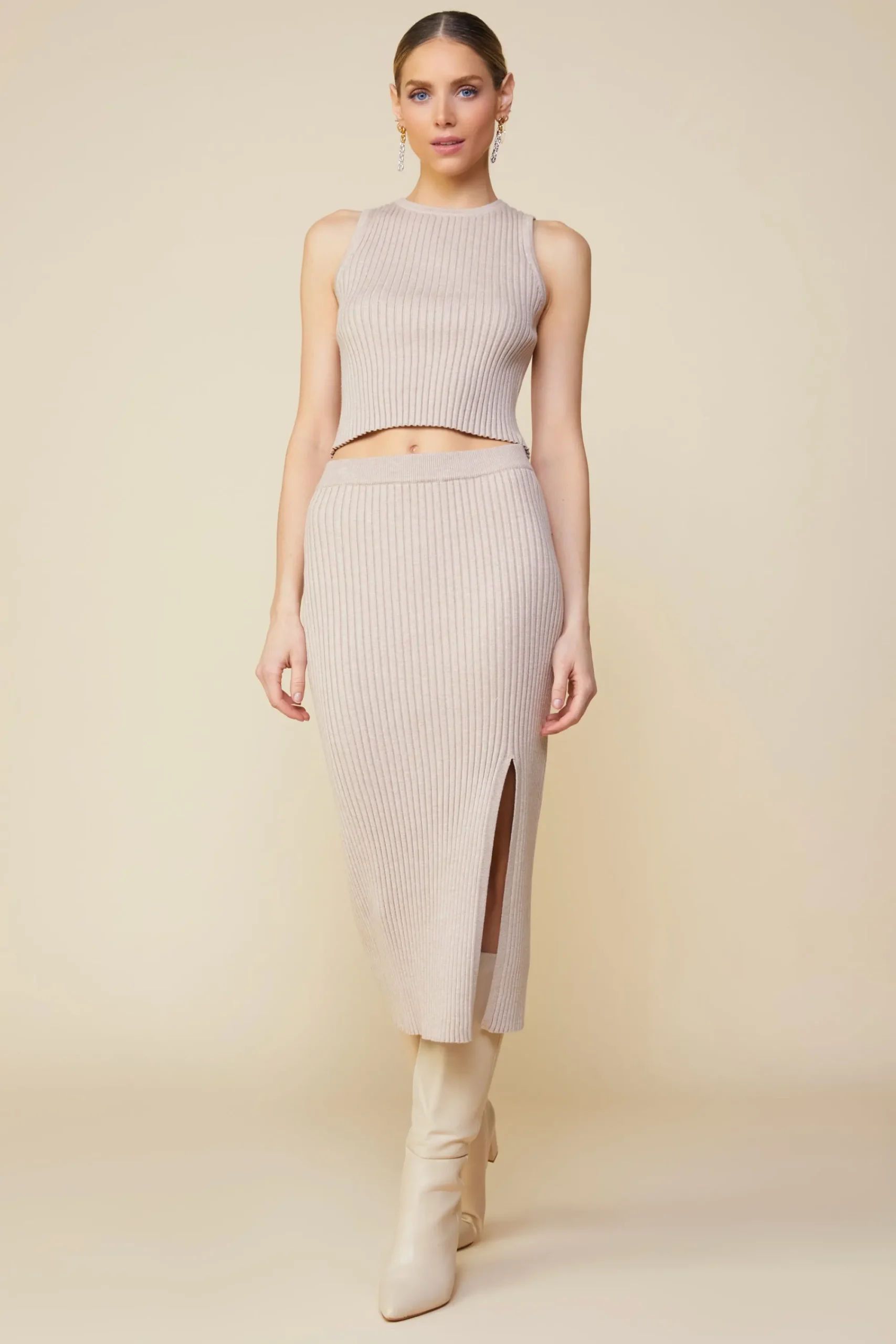 This curve-tracing midi skirt is crafted from a cozy rib knit that follows your figure before falling to an alluring slit hem. Make it set with the coordinating top, or switch up the look and wear it with a simple tee or a silky tank.