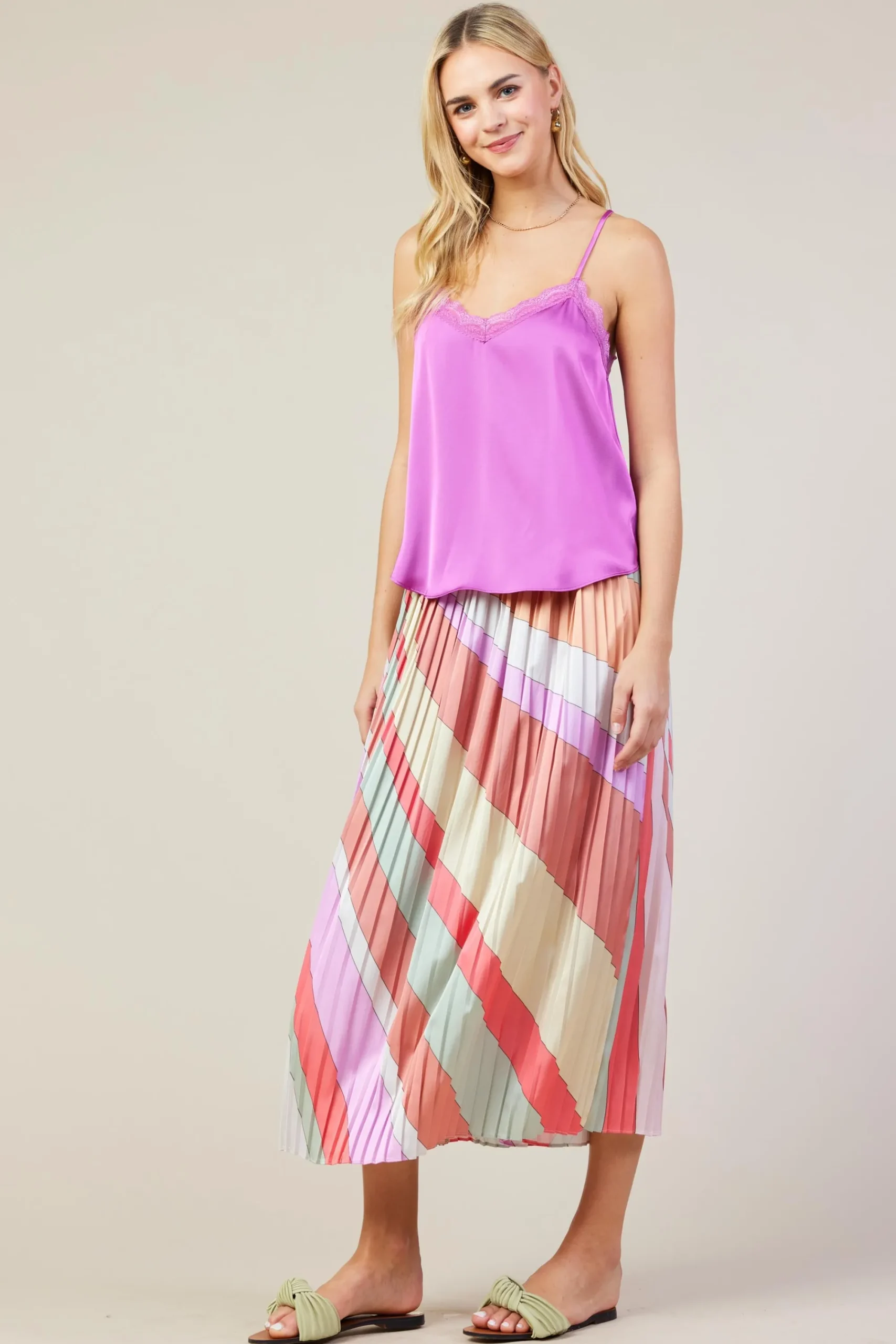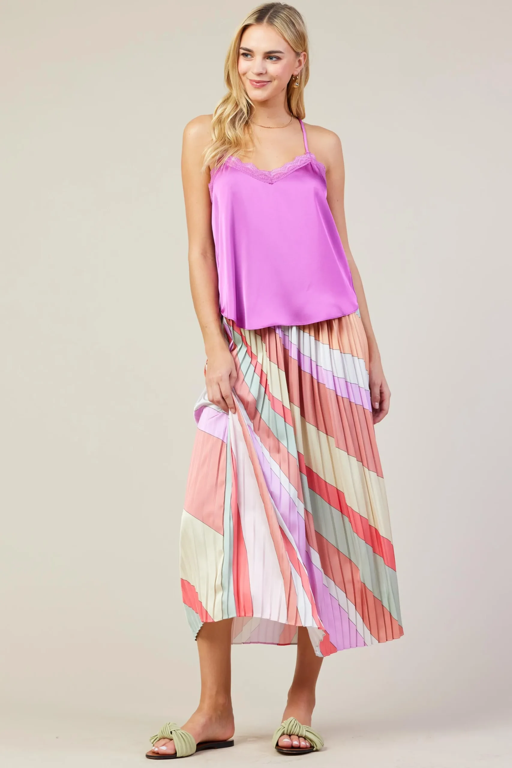 SKIES ARE BLUE Satin Lace Cami Top* Sleeveless Tops
