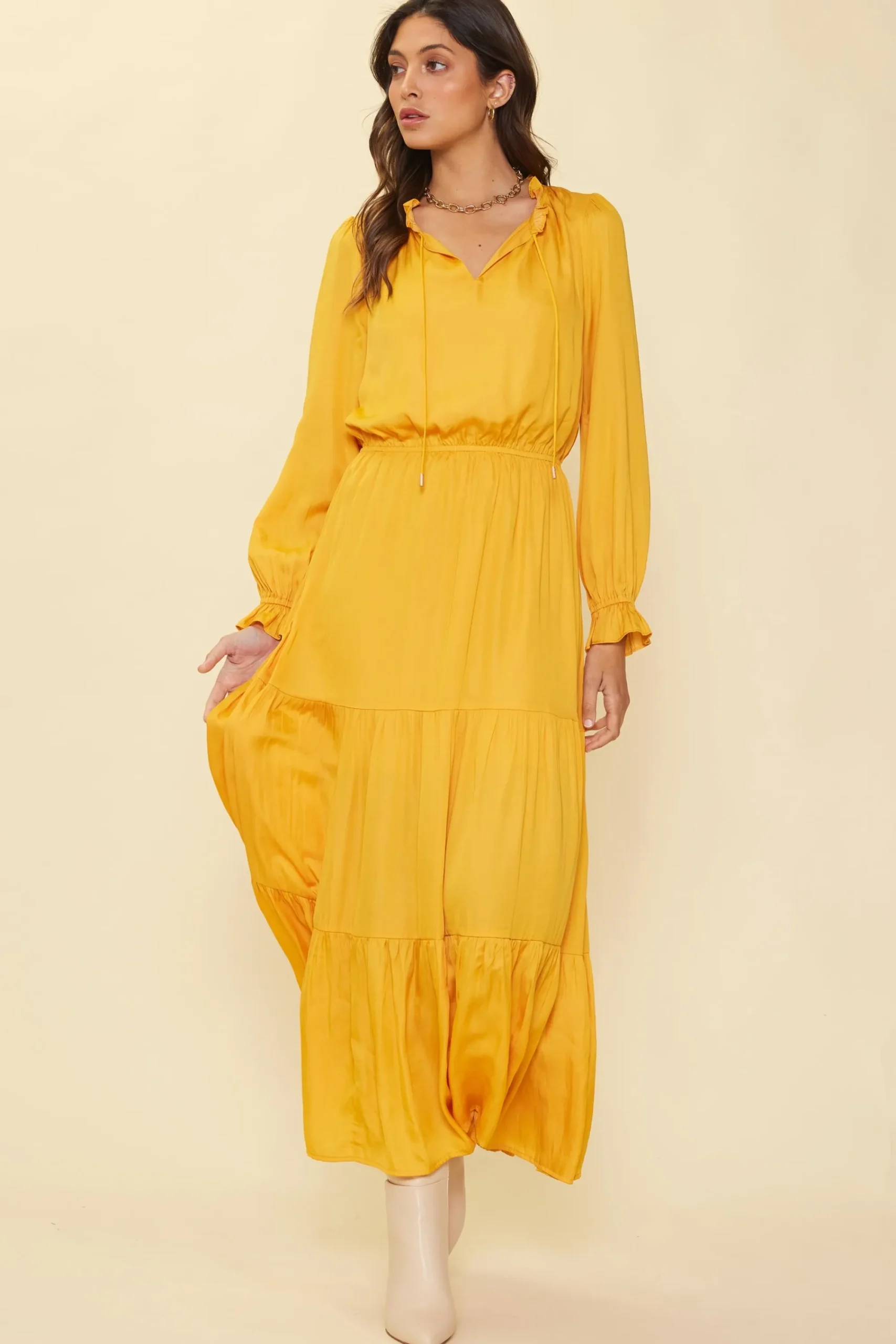 Done in an eye-catching color, this tiered maxi dress will have you floating through the season. The long-sleeve style is lightweight and exceptionally easy to wear—just add a pair of strappy sandals.