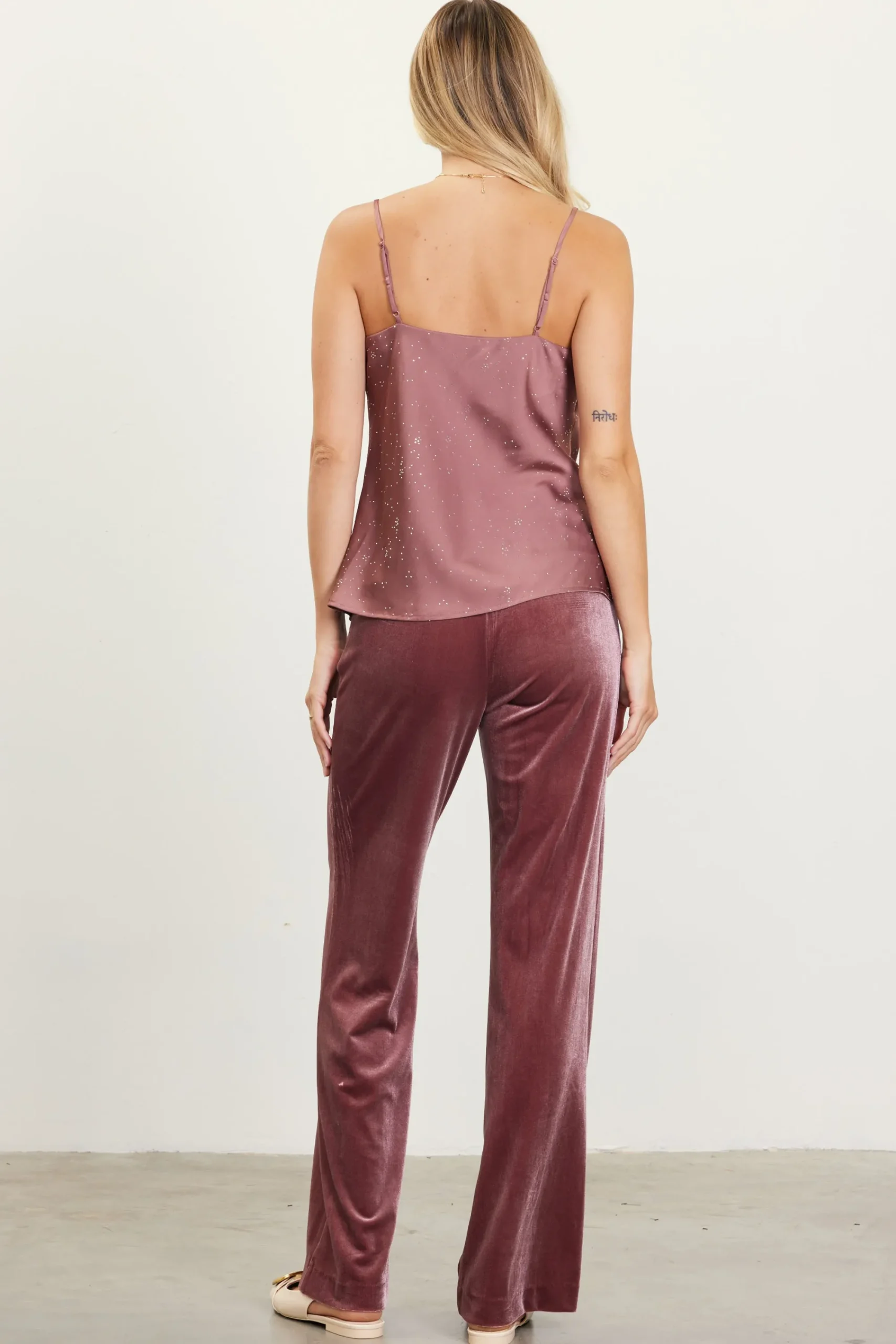 Tiny silver stones glimmer on this satin cowl-neck cami top. Accented by adjustable spaghetti straps, it’s got a slightly relaxed fit with a graceful drape.