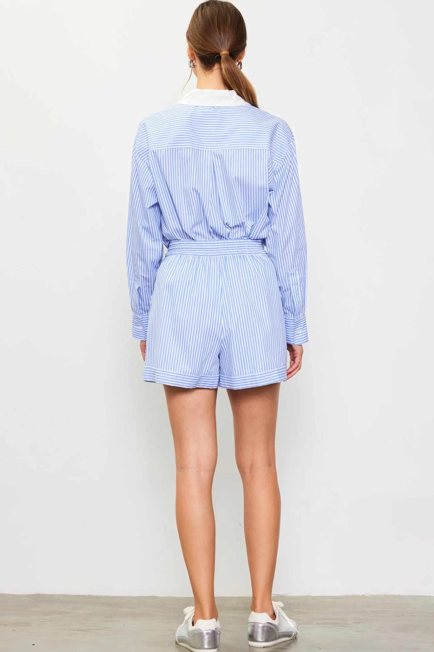 These striped shorts have a cool, crisp feel in a high-waisted silhouette with an adjustable drawstring and cuffed finish. Wear it with a simple tee or tank to lounge in, or add the matching button-up shirt for a set that feels effortless.