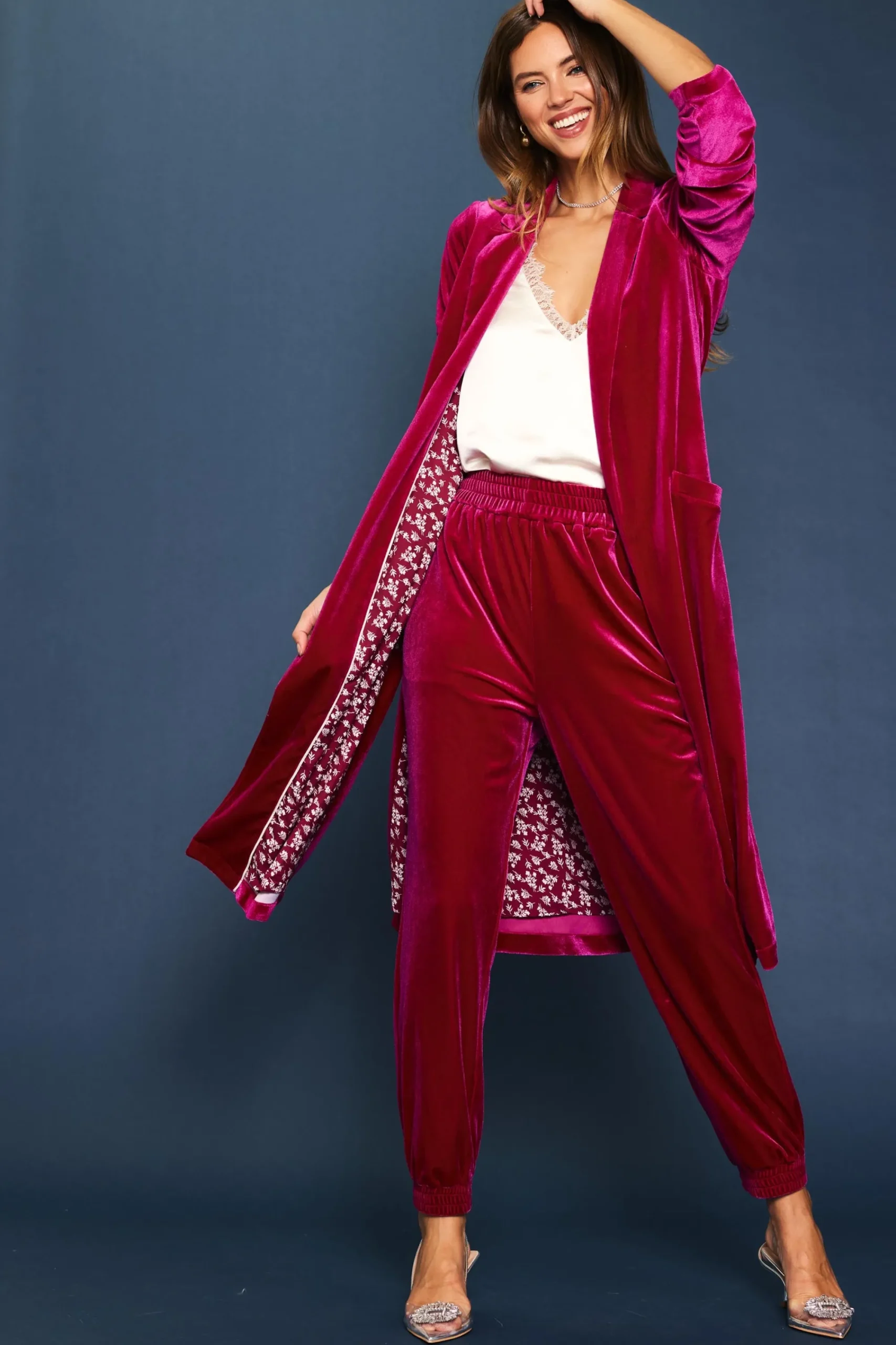Soft velvet upgrades the essential jogger pant. Featuring an elasticized waist and a relaxed fit with cinched ankles, this lustrous pair can easily be dressed up or down. The look is luxe, the feel is lounge.