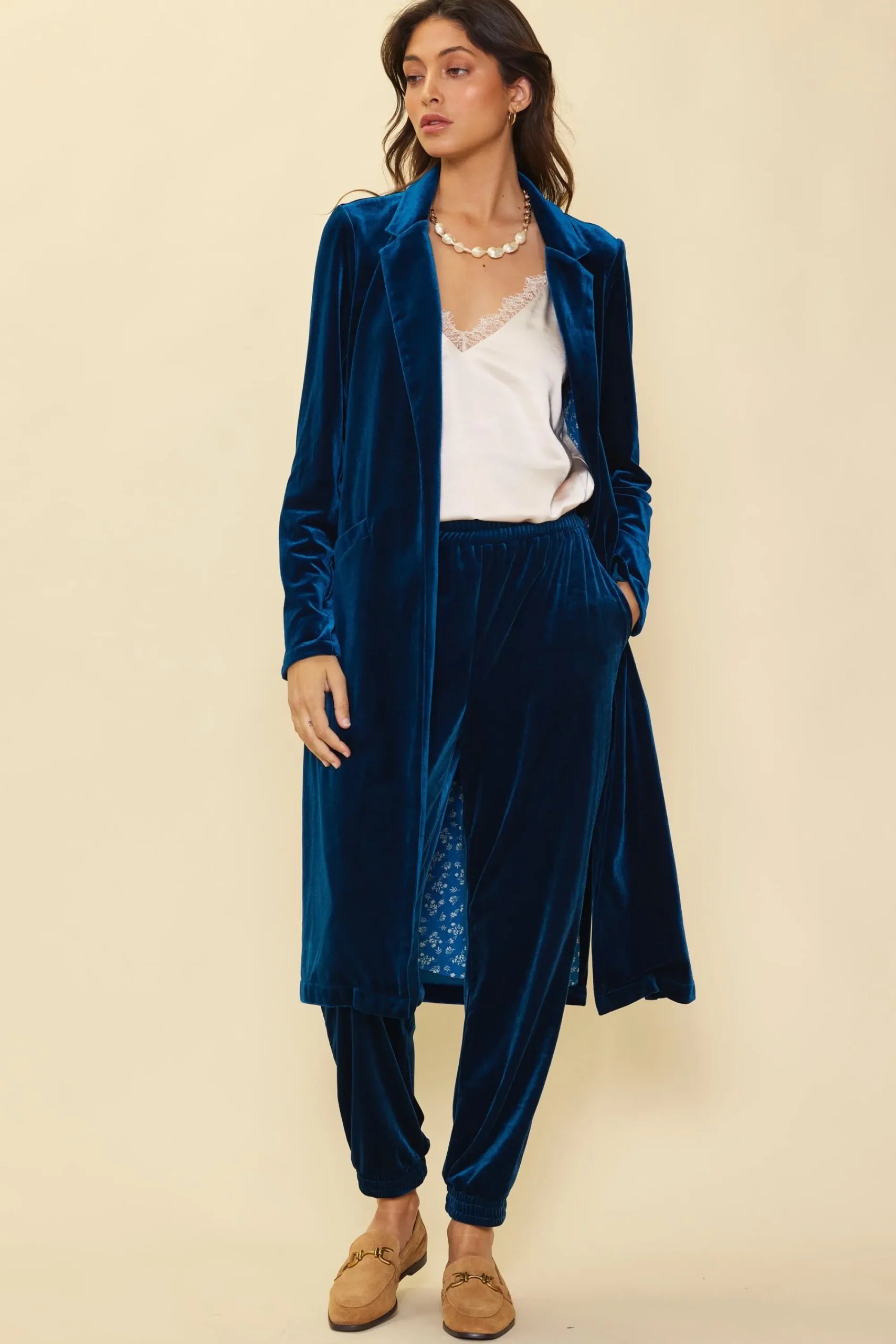 Plush velvet brings a luxe sheen and irresistibly soft feel to these updated jogger pants. Anchored by a comfortable elasticized waist, they’re cut for a slim fit through the legs and cinch at the ankles. Fair warning: you’ll probably live in these all season.