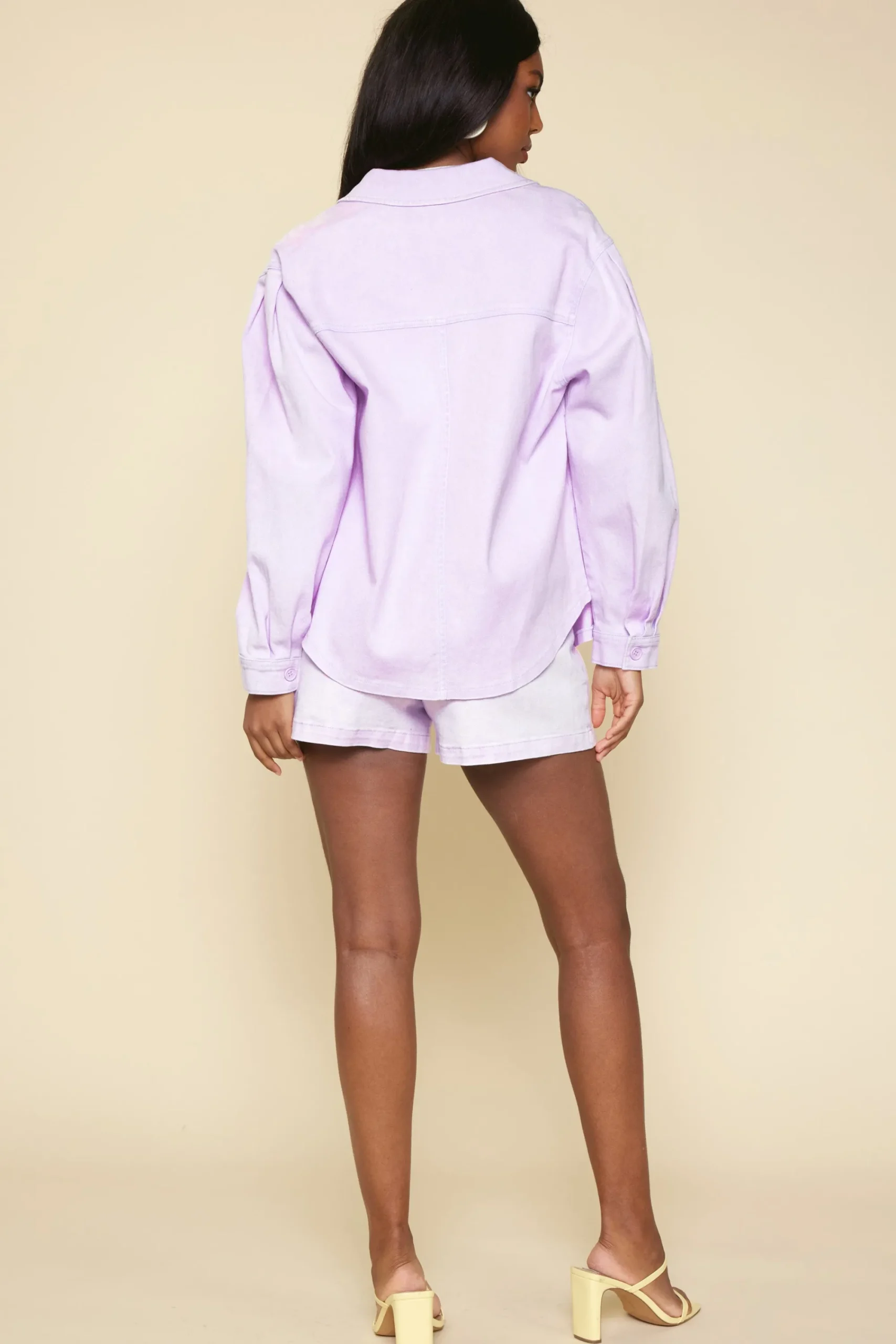 SKIES ARE BLUE Washed Cotton Twill Shacket* Long Sleeve Tops