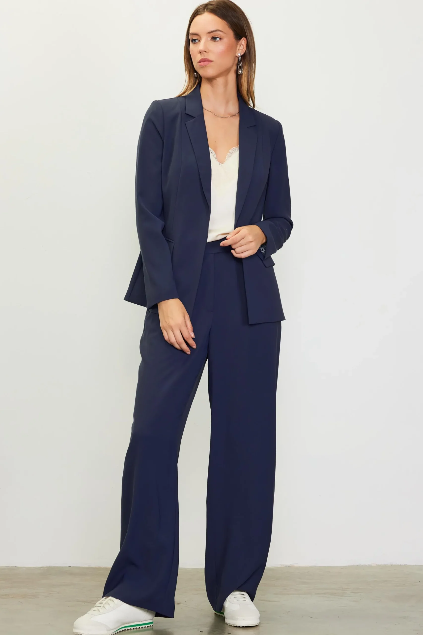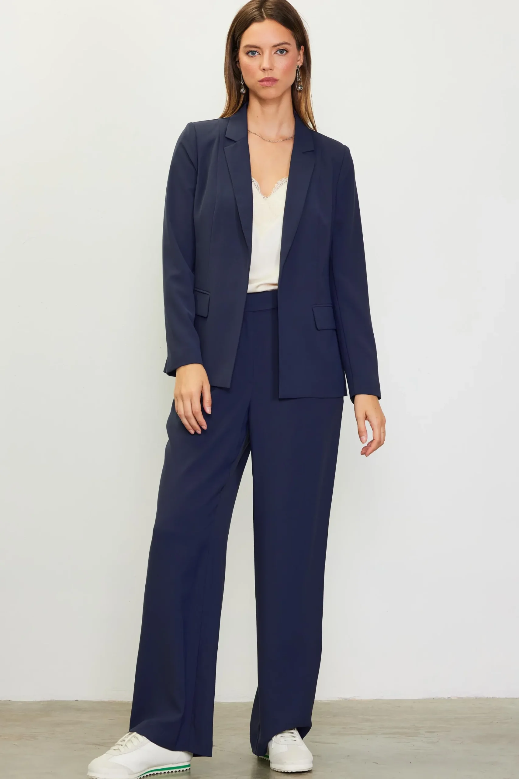 A timeless tailored blazer is a staple that works in any season. This one takes its cues from menswear, designed in a tidy silhouette with notched lapels and flap pockets. It’s got a clean, open front for a polished look with some ease to it.