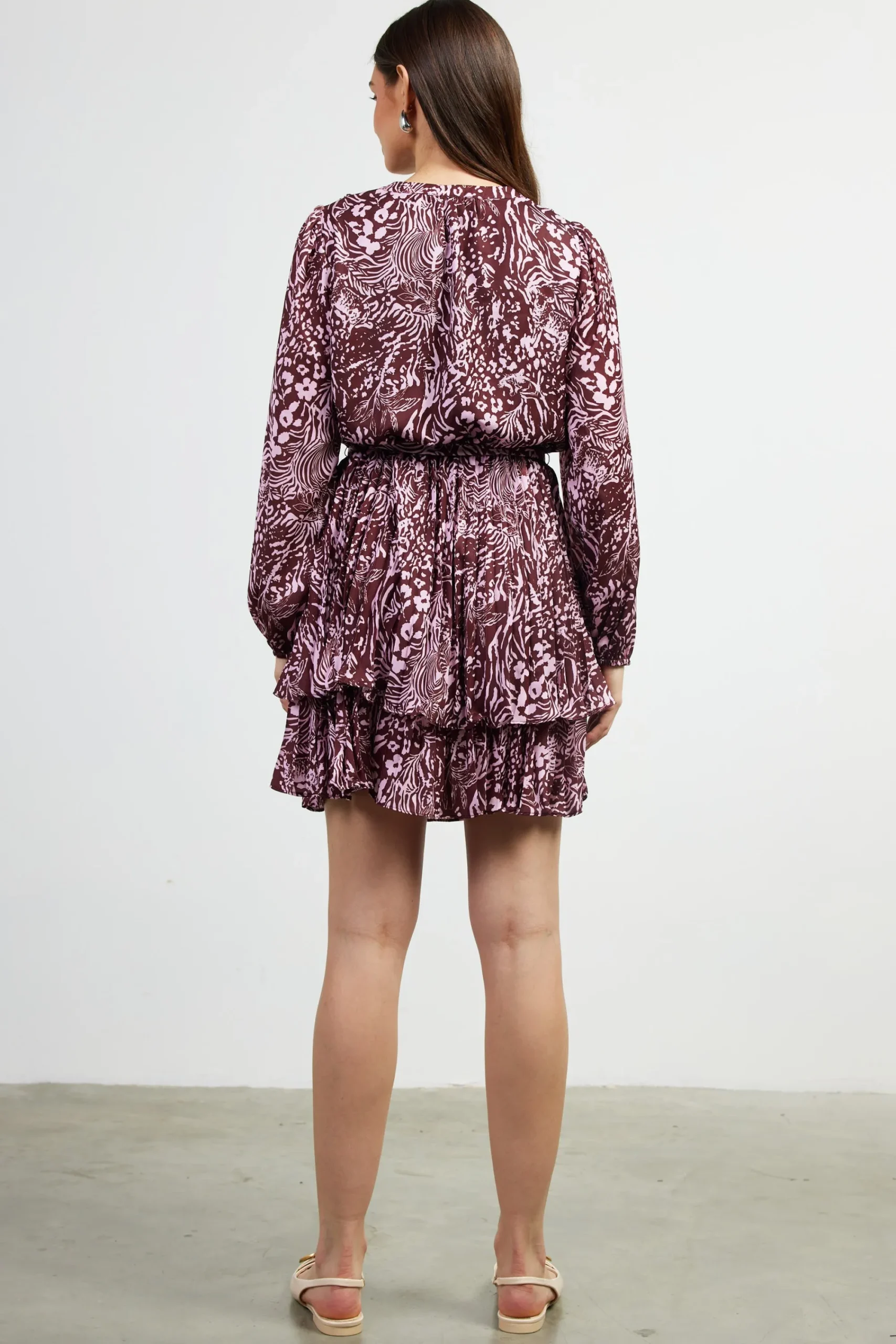 Get ready to take a walk on the wild side with this zebra print pleated dress. With a flattering pleated skirt and waist and neck ties for added style, this dress is perfect for any occasion. Don’t be surprised if you start feeling a little more fierce wearing this dress.