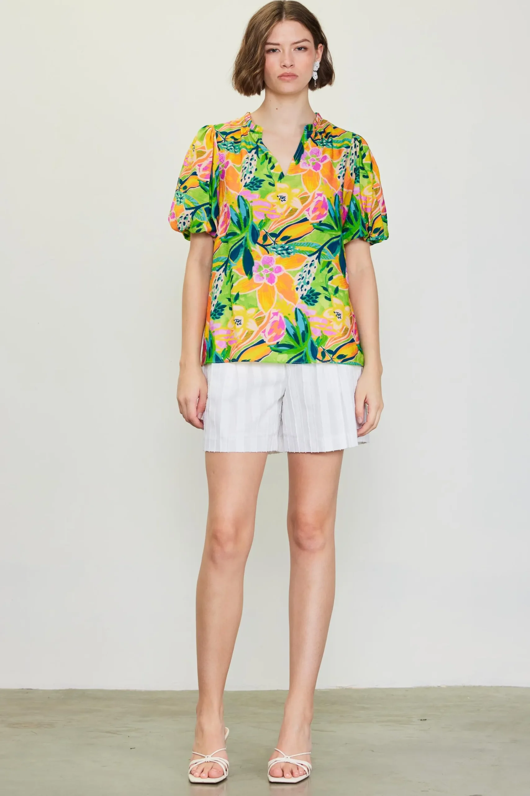 Do the bright thing in this statement-making top. With an artful floral print and bubble sleeves, it’s a real mood booster.