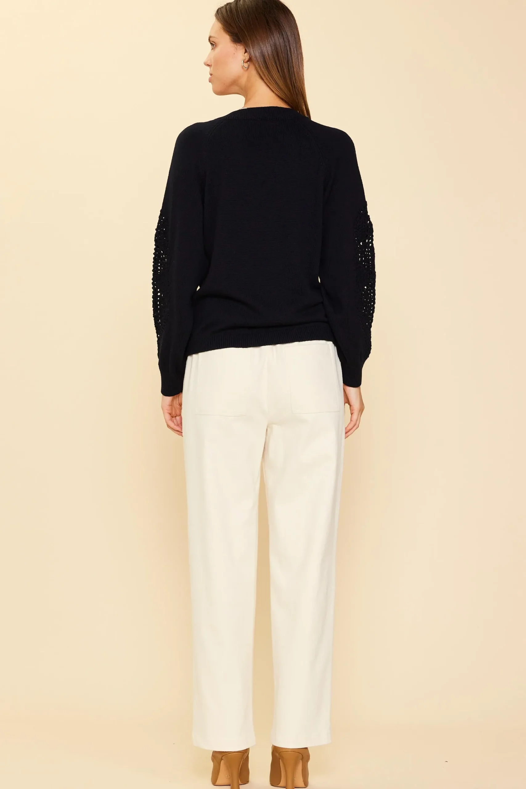 SKIES ARE BLUE Crochet Sleeve Knit Sweater* Sweaters