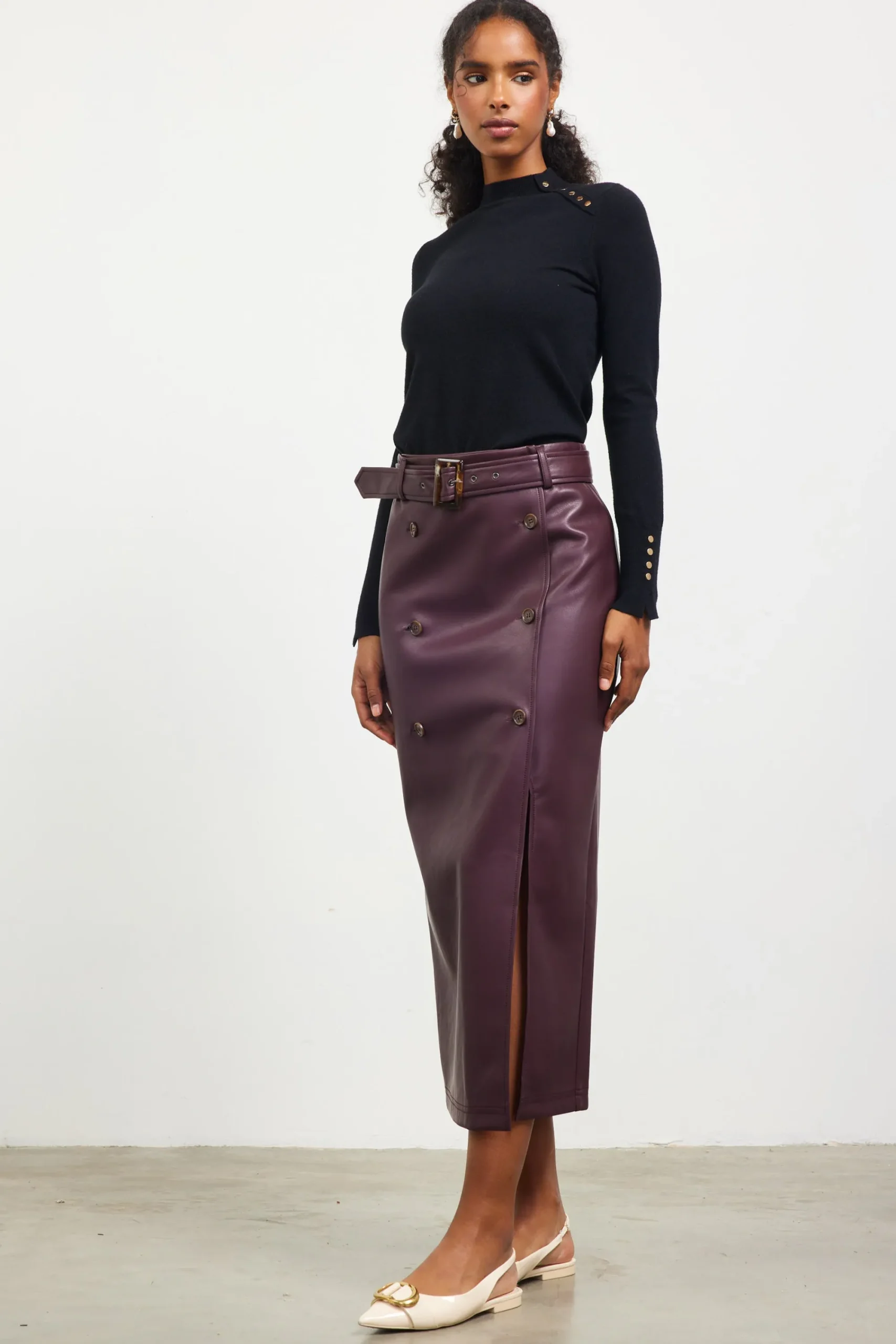 SKIES ARE BLUE Faux Leather Belted Midi Skirt* Skirts