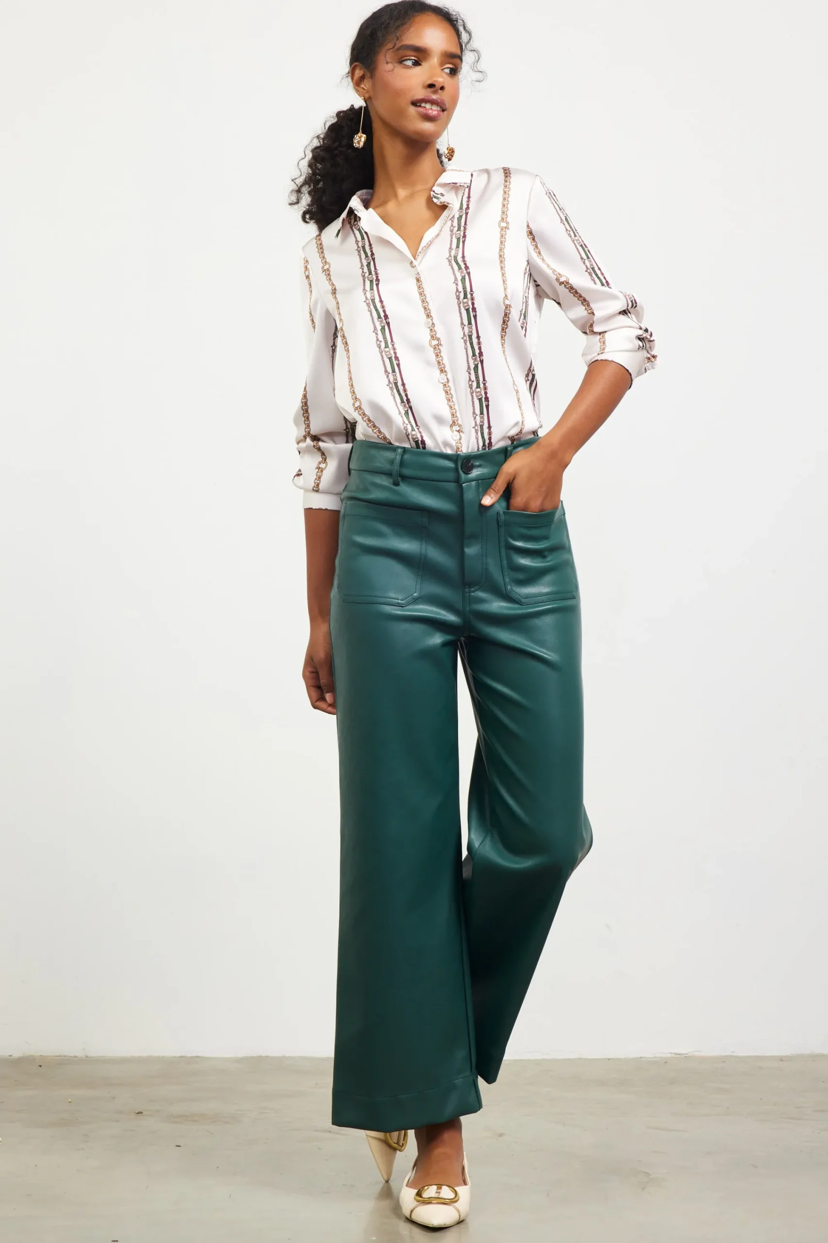 These vegan leather pants bring an edge to any look. Designed to sit high on the waist, they’re cut for a wide-leg silhouette and finished with patch pockets.