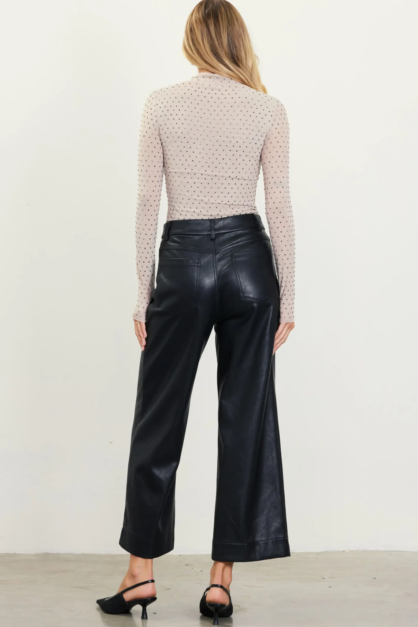 These vegan leather pants bring an edge to any look. Designed to sit high on the waist, they’re cut for a wide-leg silhouette and finished with patch pockets.