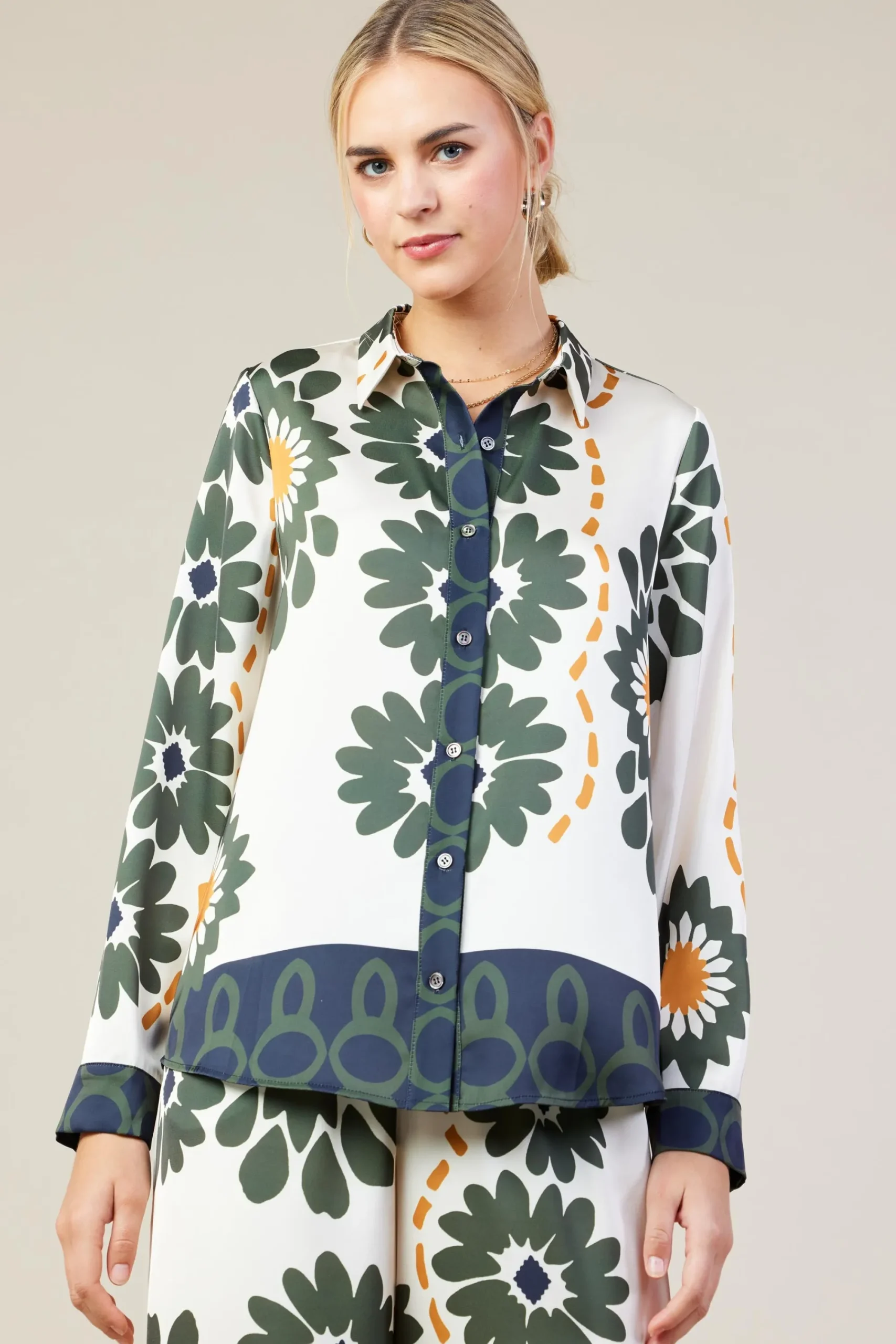 A bold print makes a striking impression on this button-up blouse. Lightweight and relaxed, the long-sleeve style features an abstract motif of blue, black, and red on an ivory base. It’s accented by a contrasting placket, cuffs, and hem.