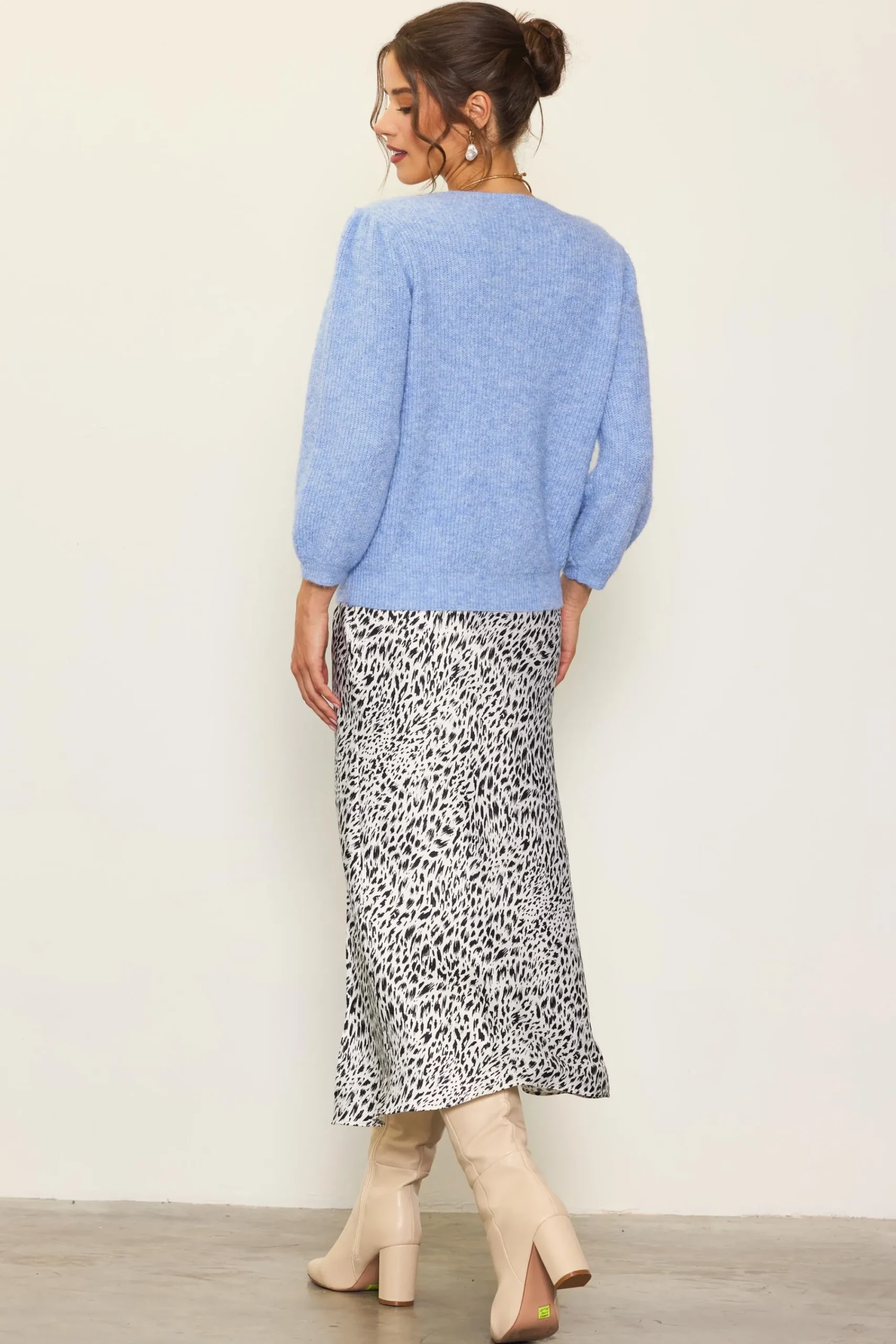 Cozy, but make it sweet. This puff-sleeve cardigan comes in a cushy rib knit shaded with soft color. And let’s not forget about those jewelry-like buttons at the front.