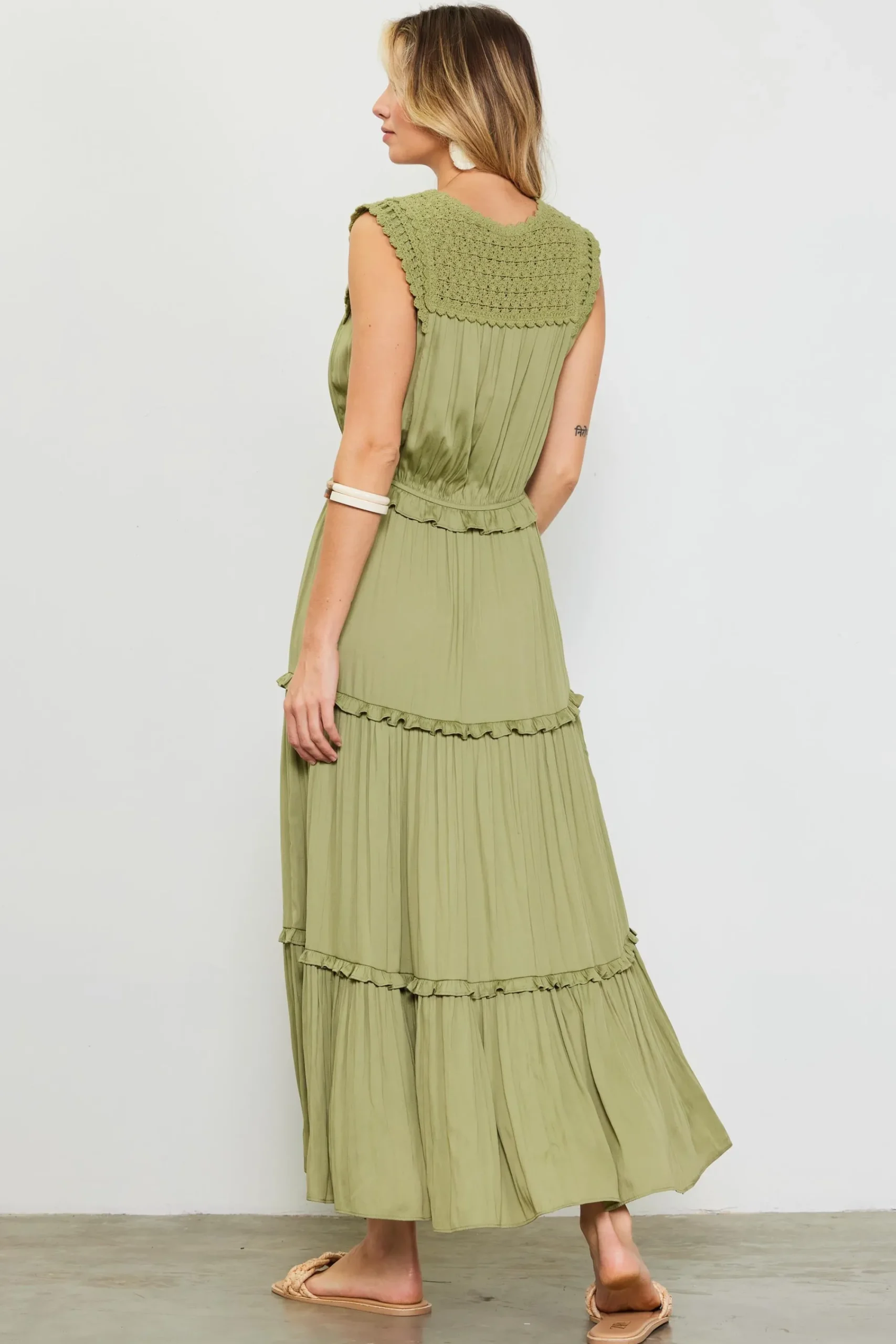 SKIES ARE BLUE Mixed Media Ruffled Tiered Midi Dress* Midi Dresses