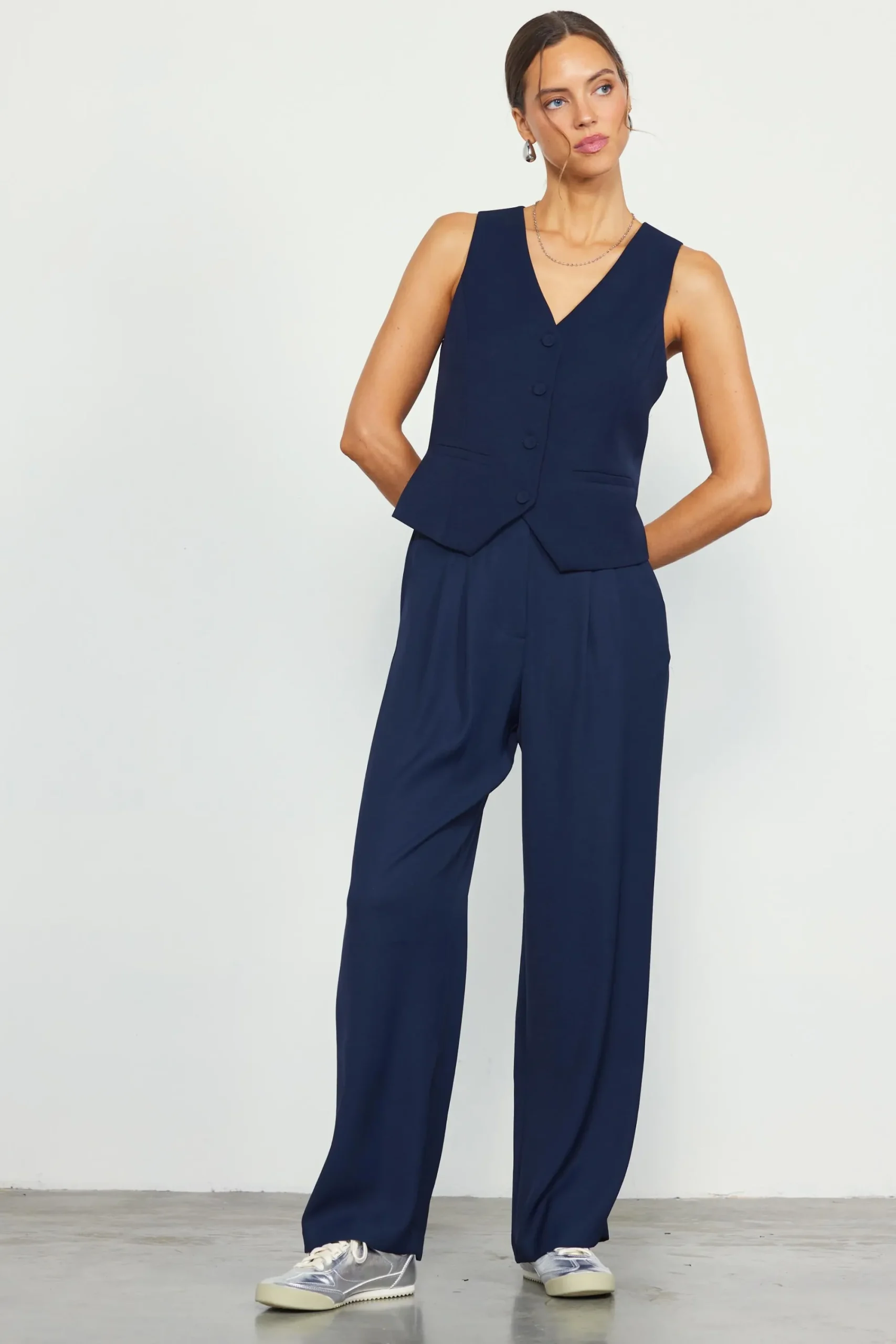 SKIES ARE BLUE Recycled Button Down Vest* Sleeveless Tops