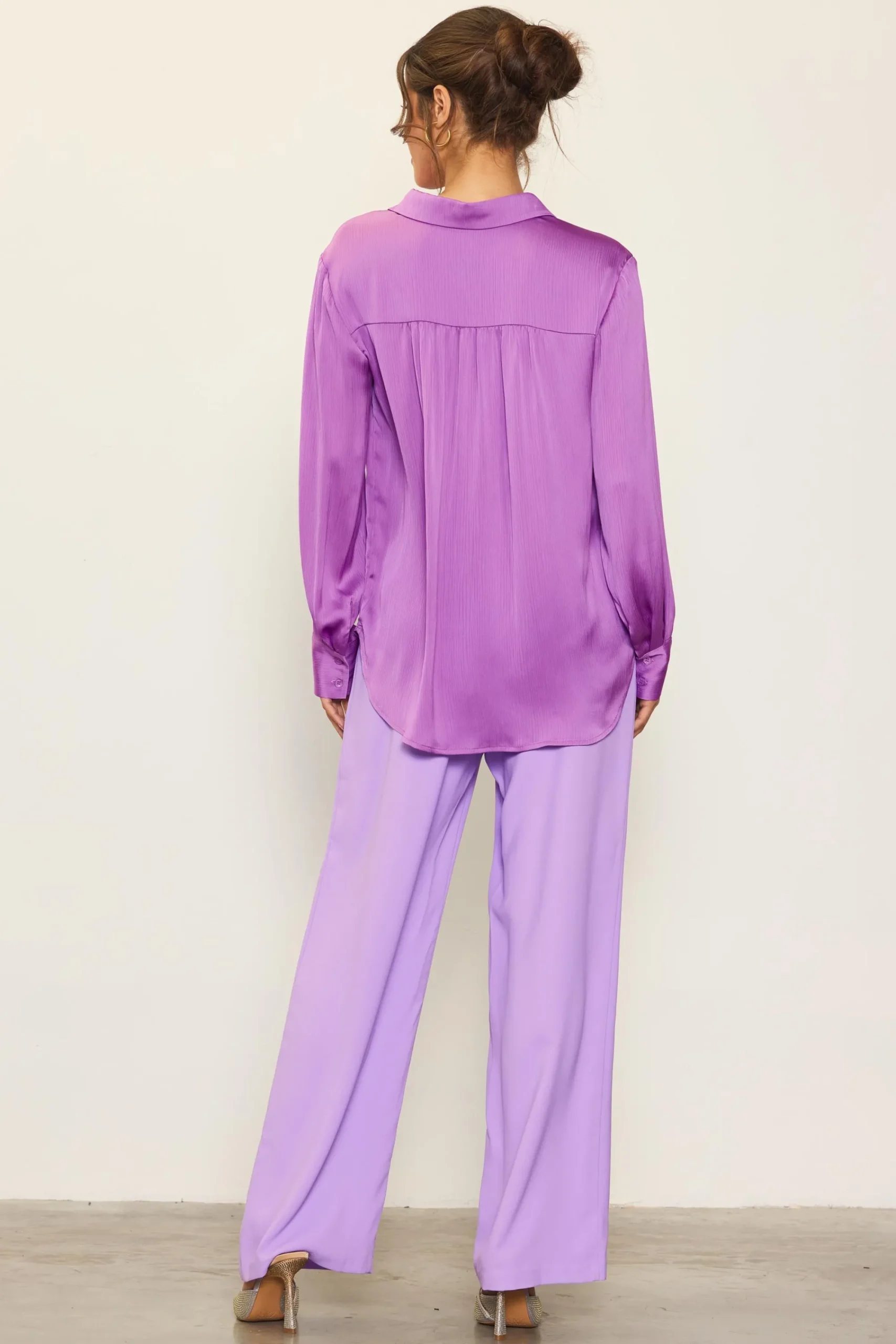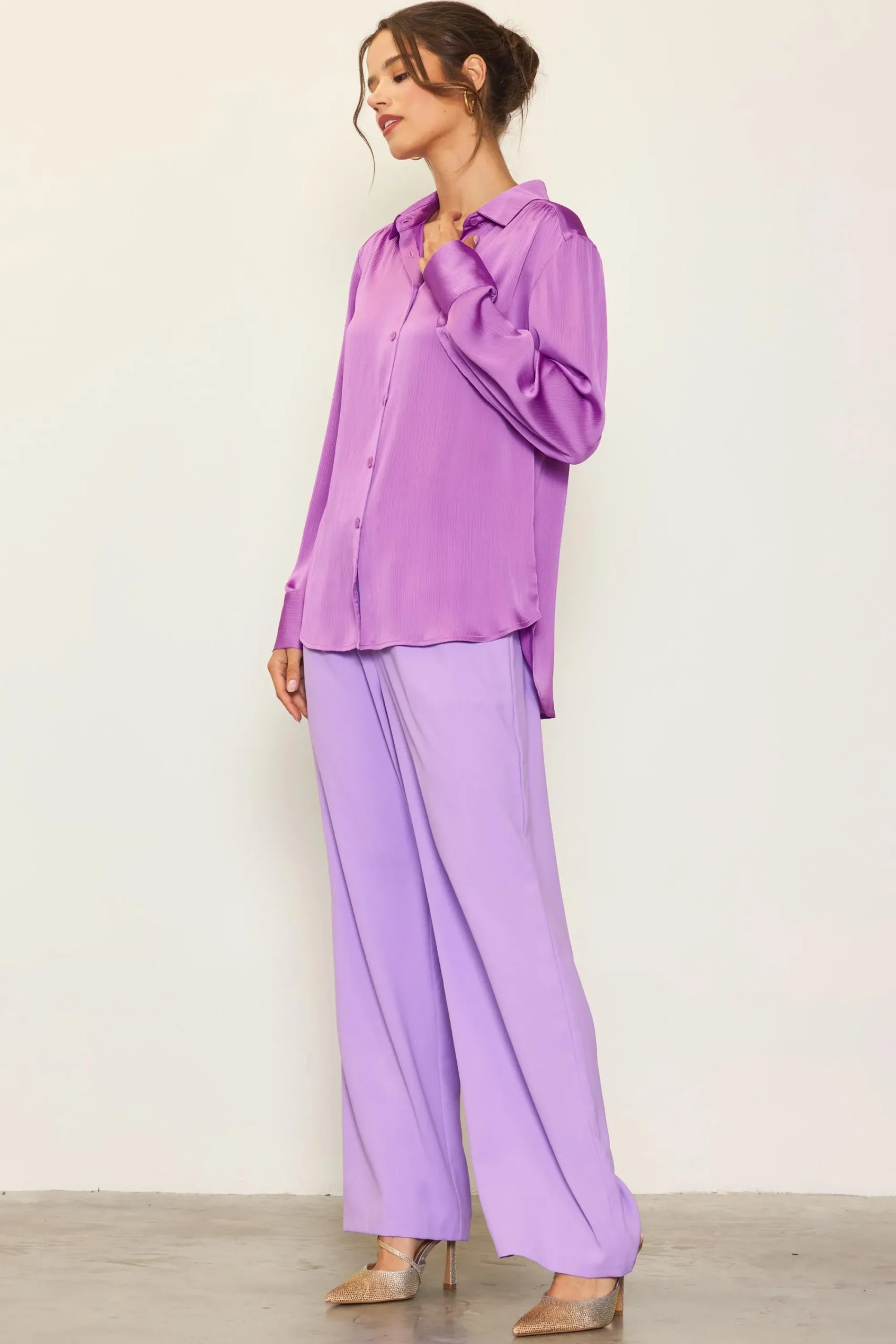 SKIES ARE BLUE Recycled Crinkle Satin Buttondown* Long Sleeve Tops
