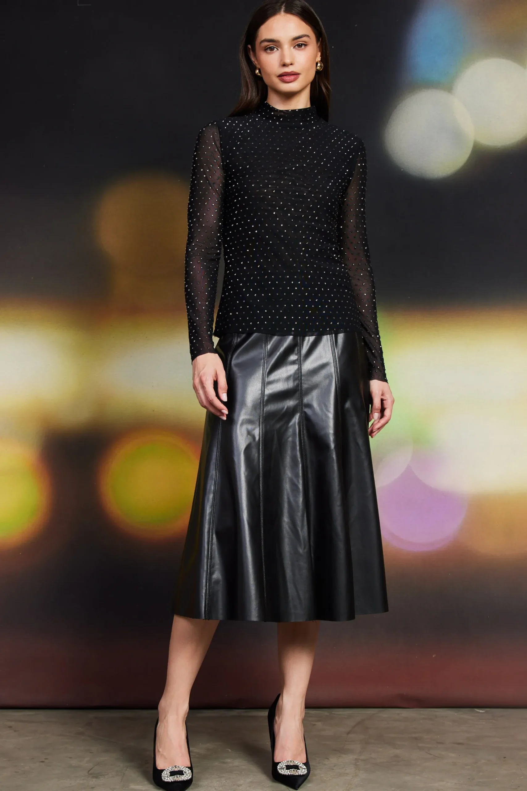 SKIES ARE BLUE Rhinestone Mesh Mock Neck Top* Long Sleeve Tops