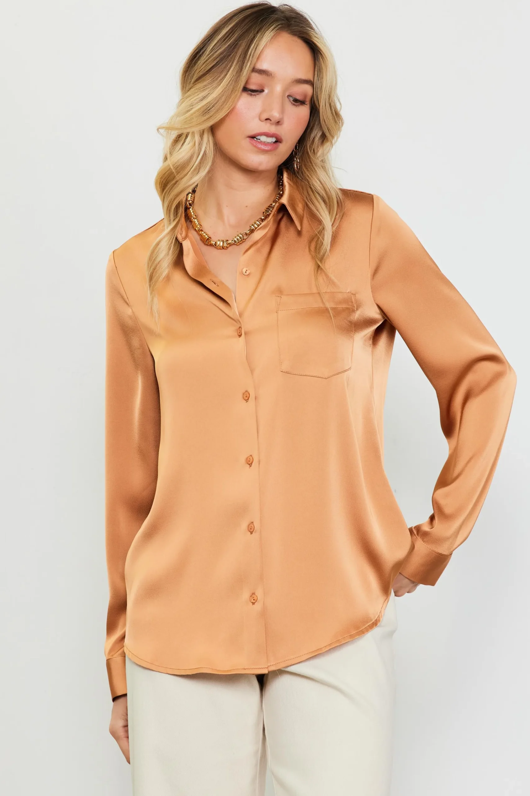 SKIES ARE BLUE Satin Button Down Top* Blouses|Long Sleeve Tops