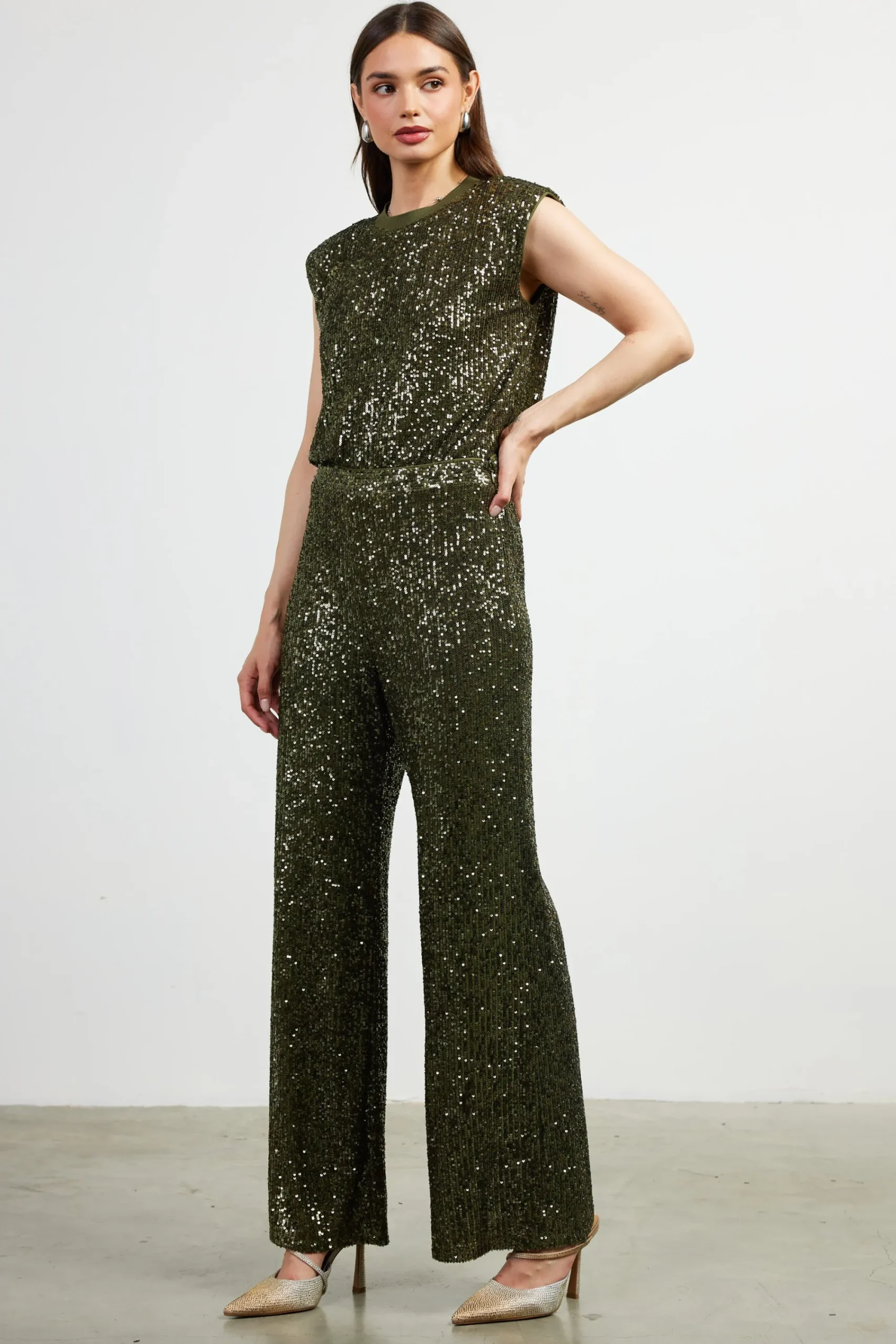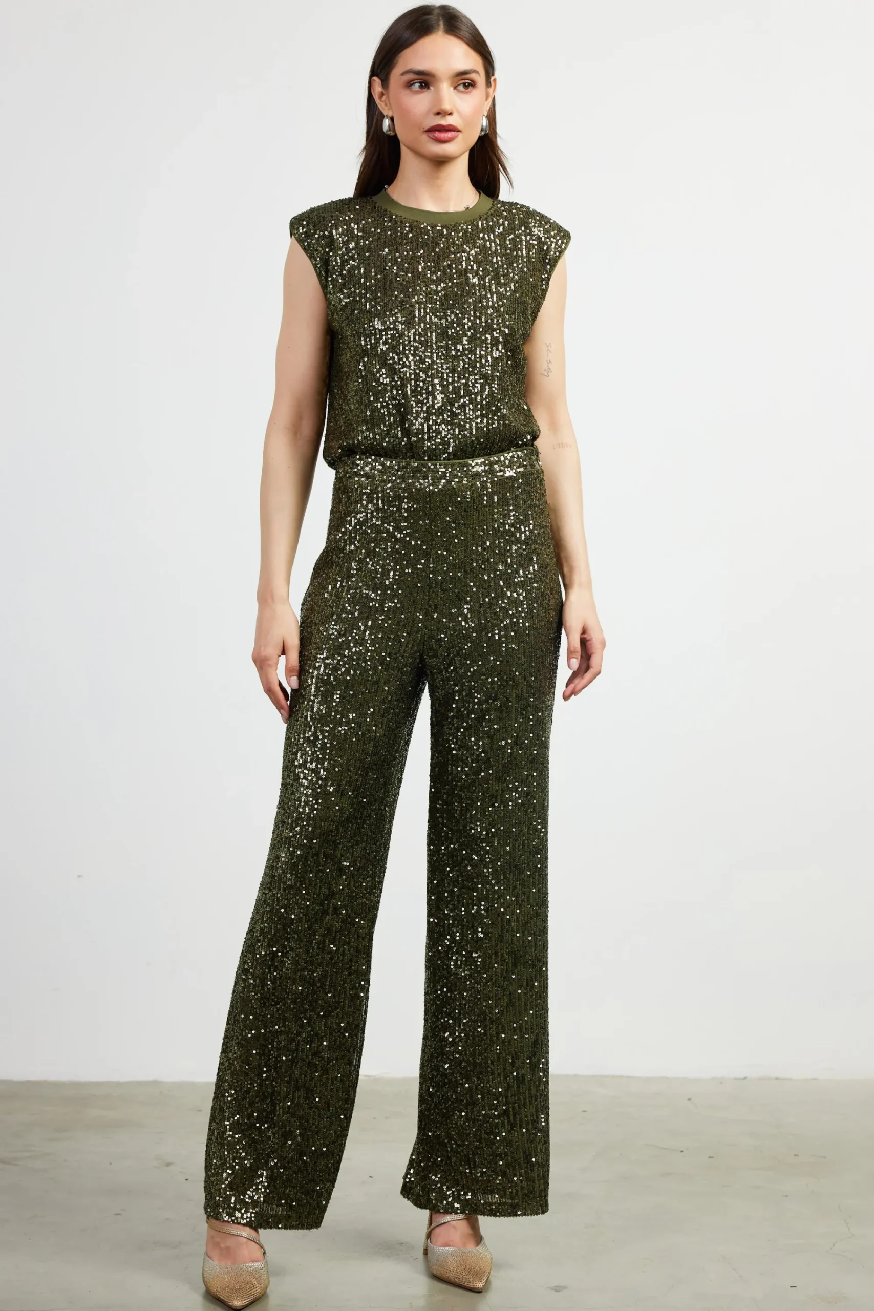 These occasion-ready pants are adorned with shimmering sequins, creating a look that’s impossible to miss. The silhouette is defined by a high-rise waist and slightly flared legs. A foolproof piece that’s sure to command attention wherever you go.