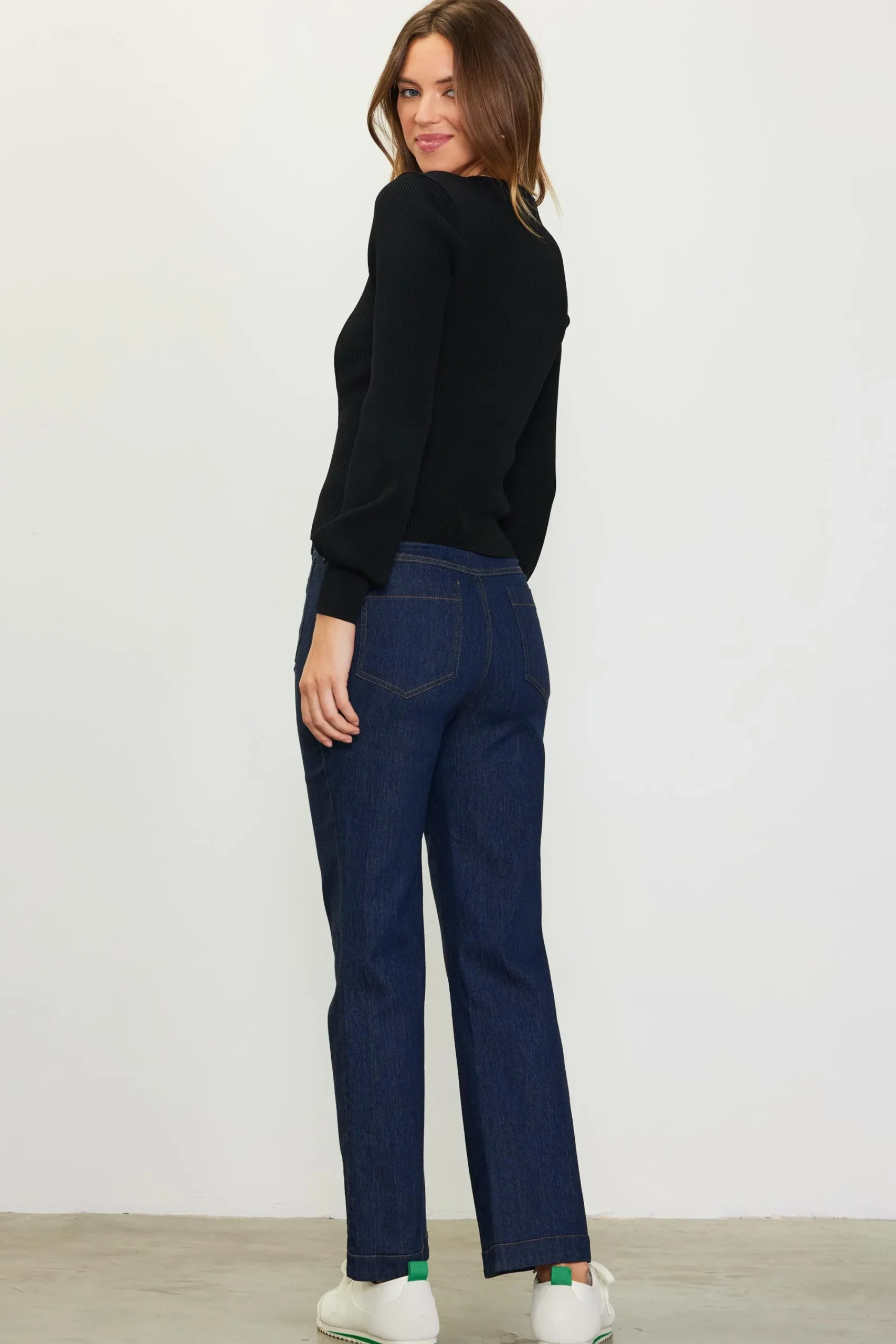 Alluring and ultra-feminine in a curve-hugging rib knit, this fitted top has a sweetheart neckline and bishop sleeves. Wear yours with jeans or a slinky skirt.